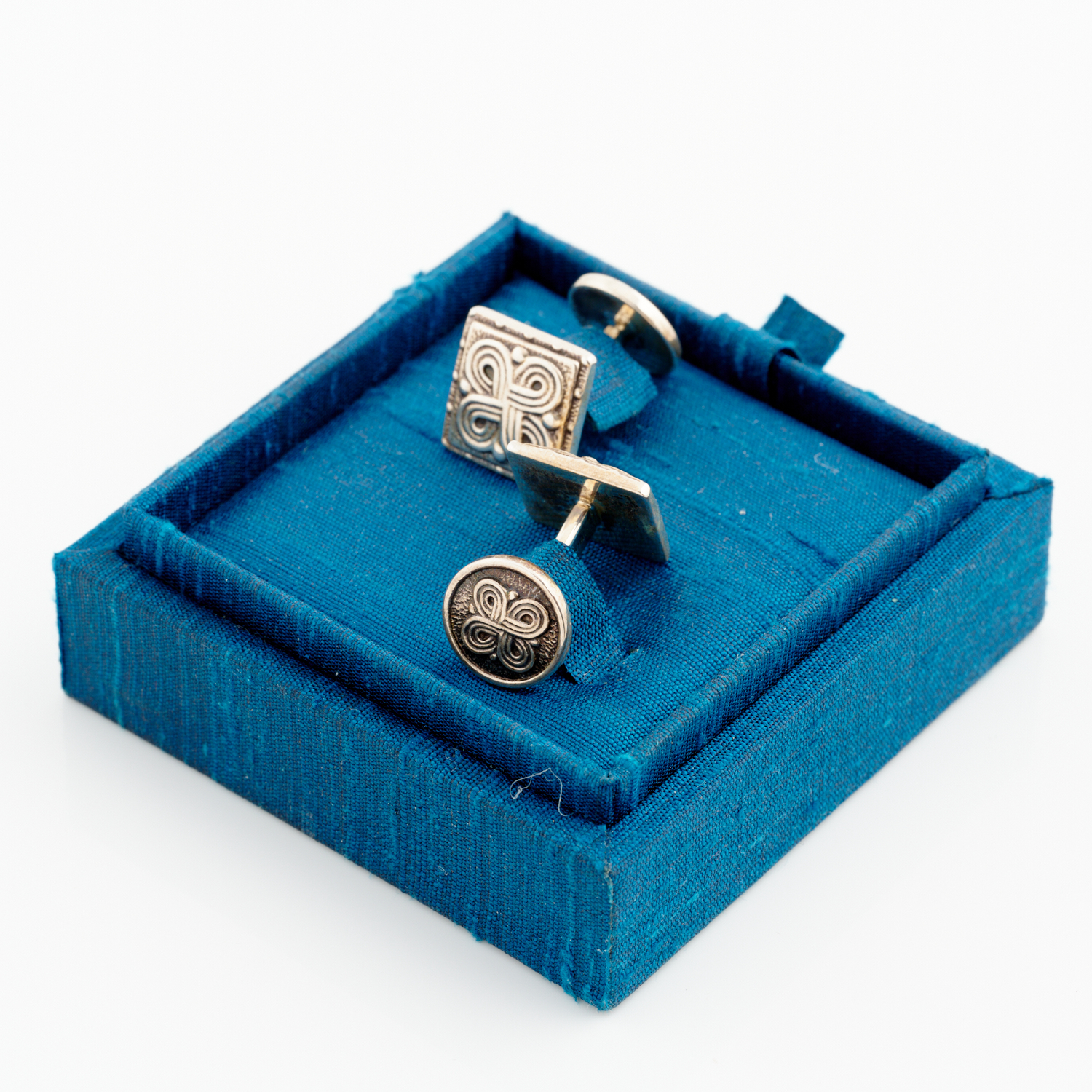 BUCCELLATI, A PAIR OF ENGRAVED CUFFLINKS IN STERLING SILVER, ACCOMPANIED BY A BOX