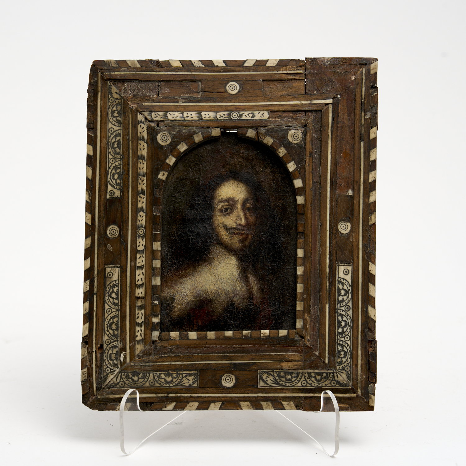 AN 18TH CENTURY FRAMED PORTRAIT RESEMBLING CHARLES I, THE SCOTT 18 X 21CM