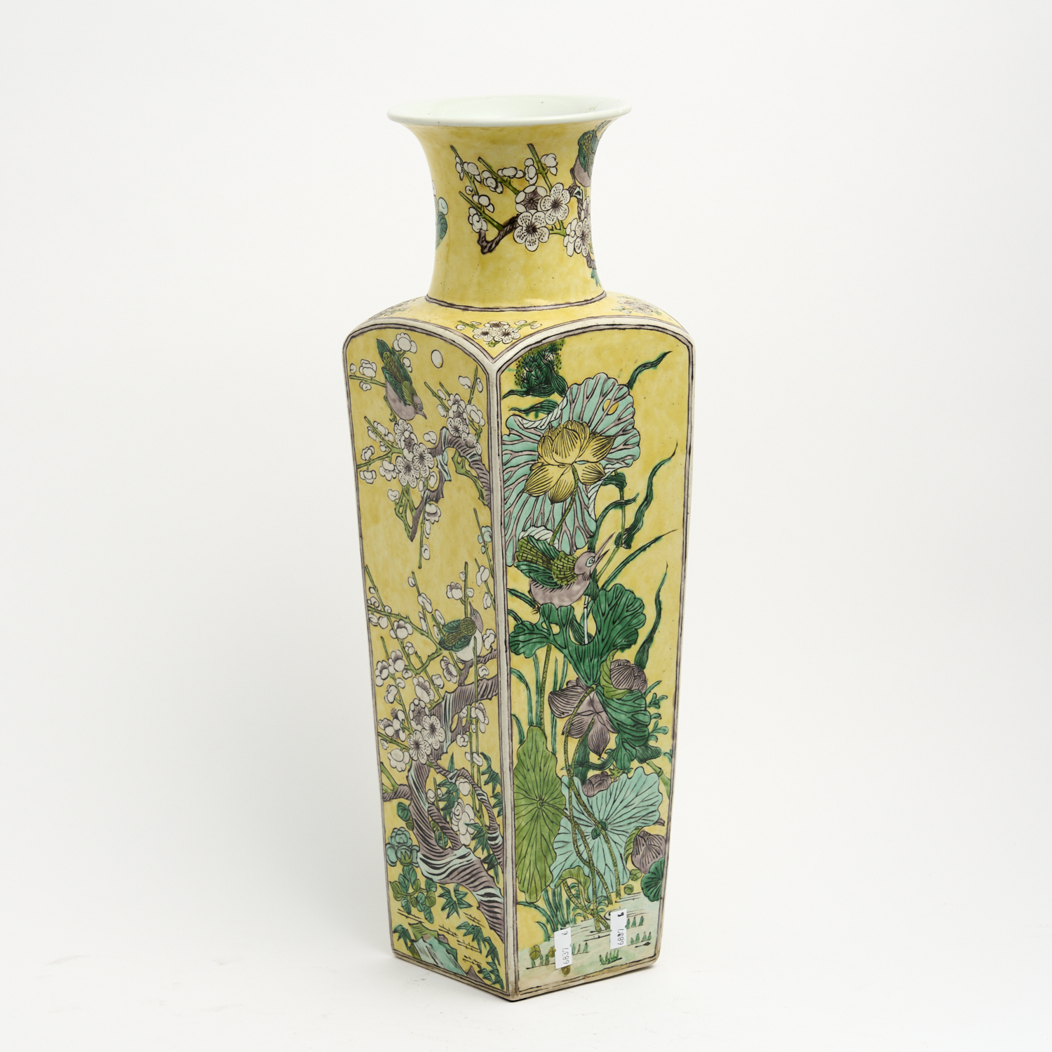 A LATE 19TH CENTURY CHINESE FAMILLE VERTE VASE OF SQUARE TAPERED FORM H.49.5CM