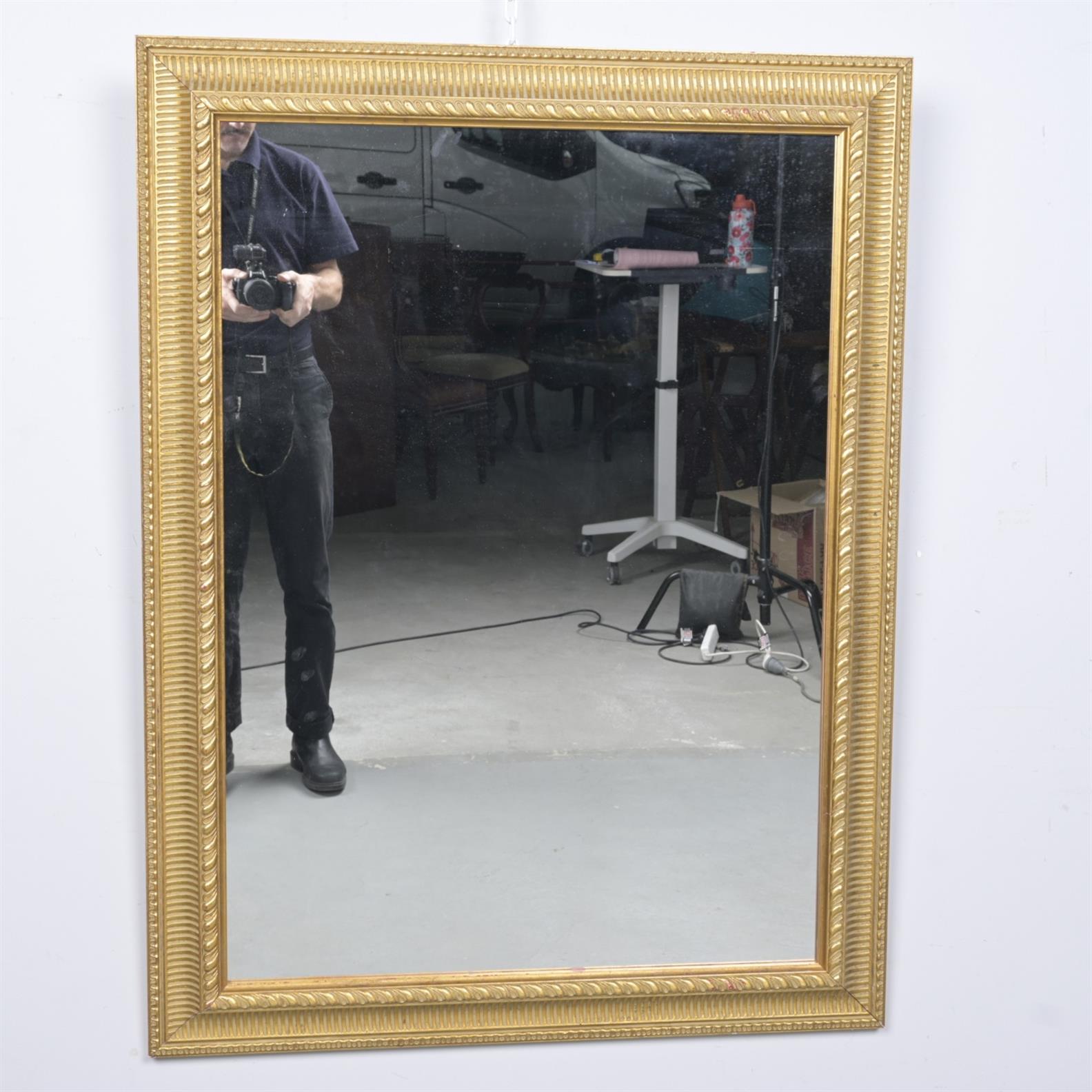 A LARGE RECTANGULAR GILT FRAMED MIRROR (118H X 89W CM)