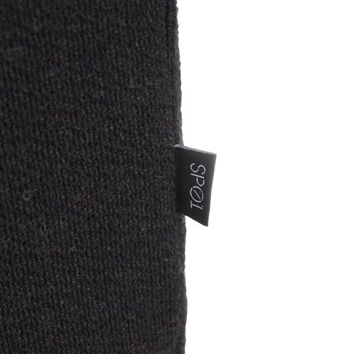 In a black woven textile upholstery with corner cushions. Accented with express seam detailing.