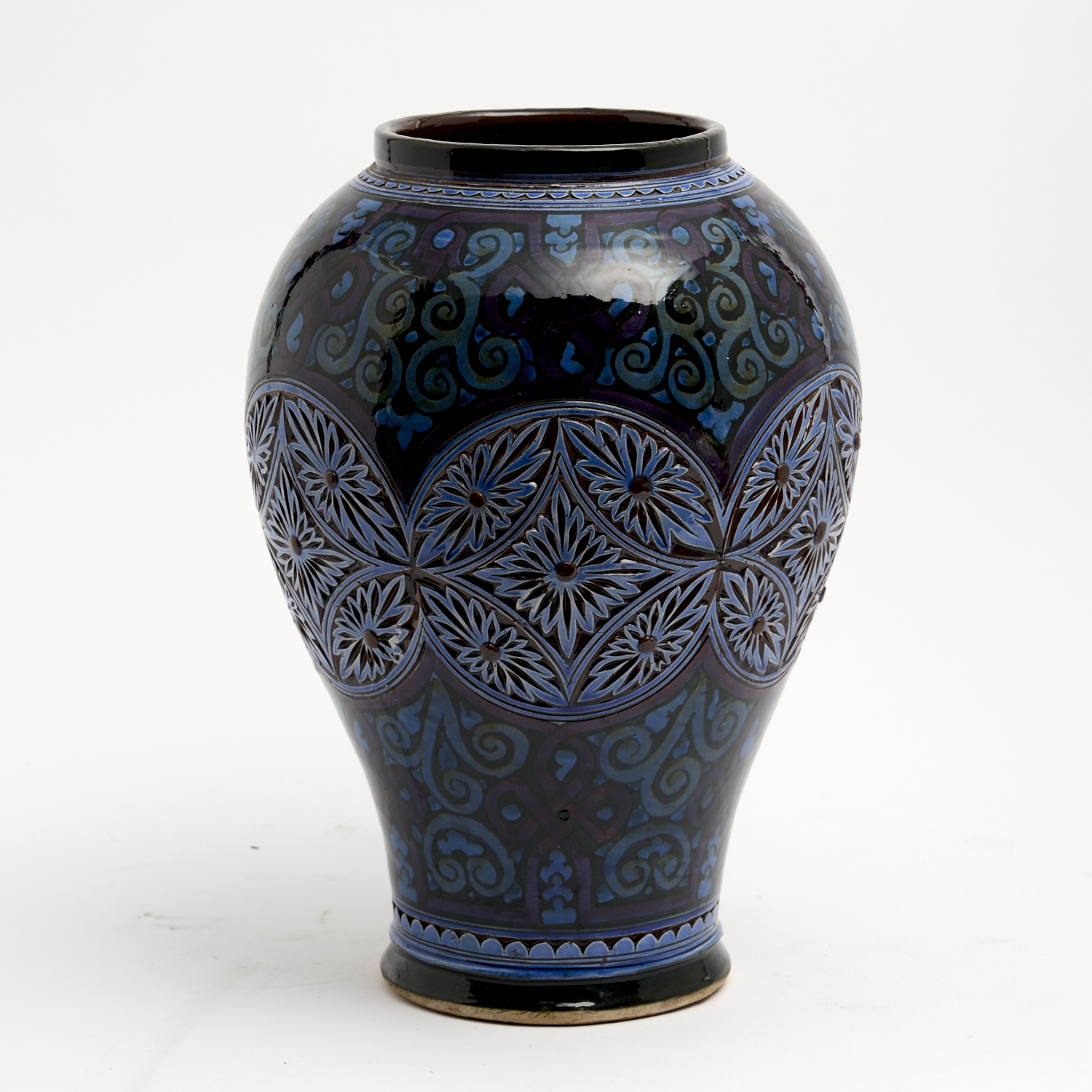 A MORROCON POTTERY VASE MARKED 'ALAM SAFI' H.36CM