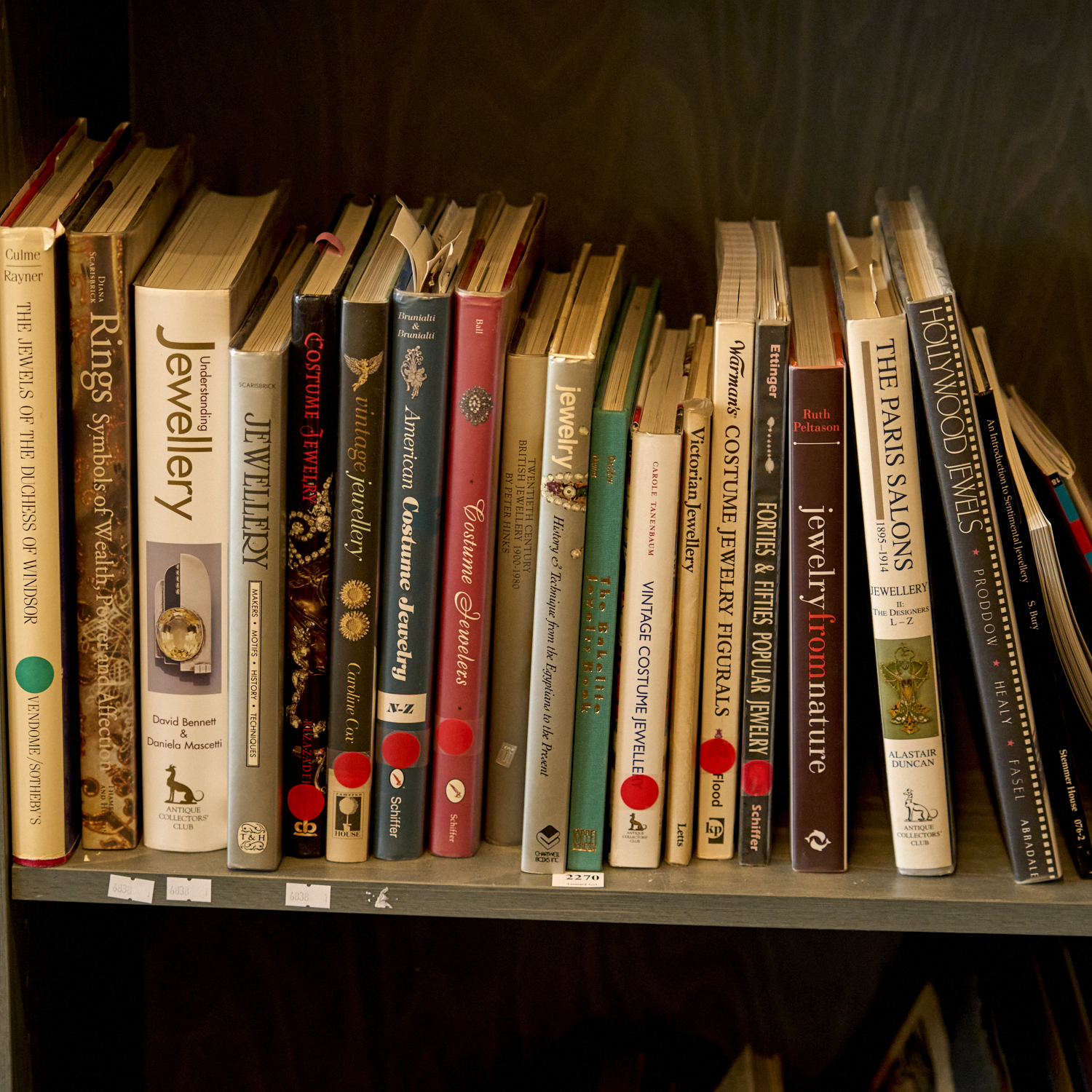 A SHELF OF BOOKS ON JEWELLERY COLLECTING