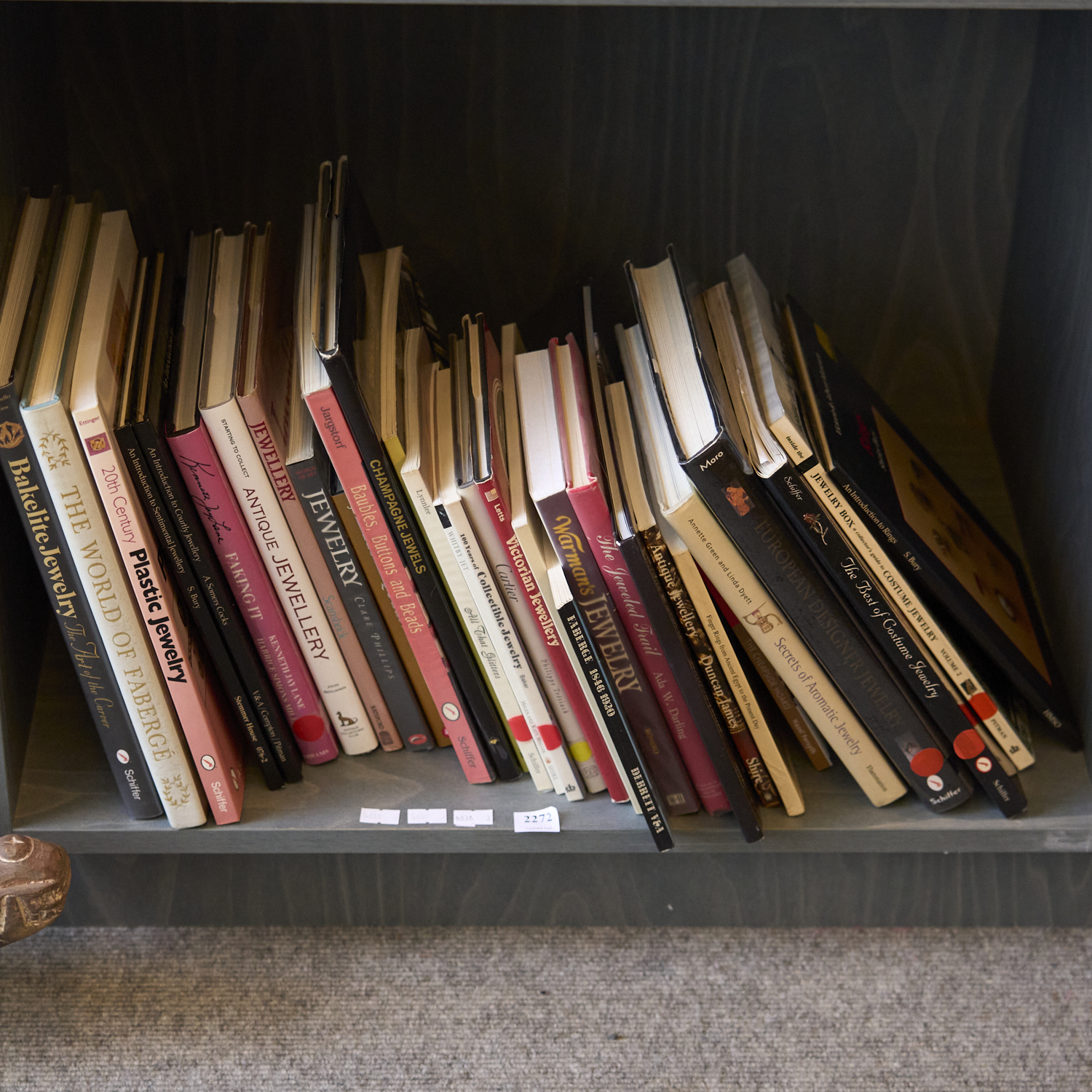 A SHELF OF BOOKS ON JEWELLERY COLLECTING