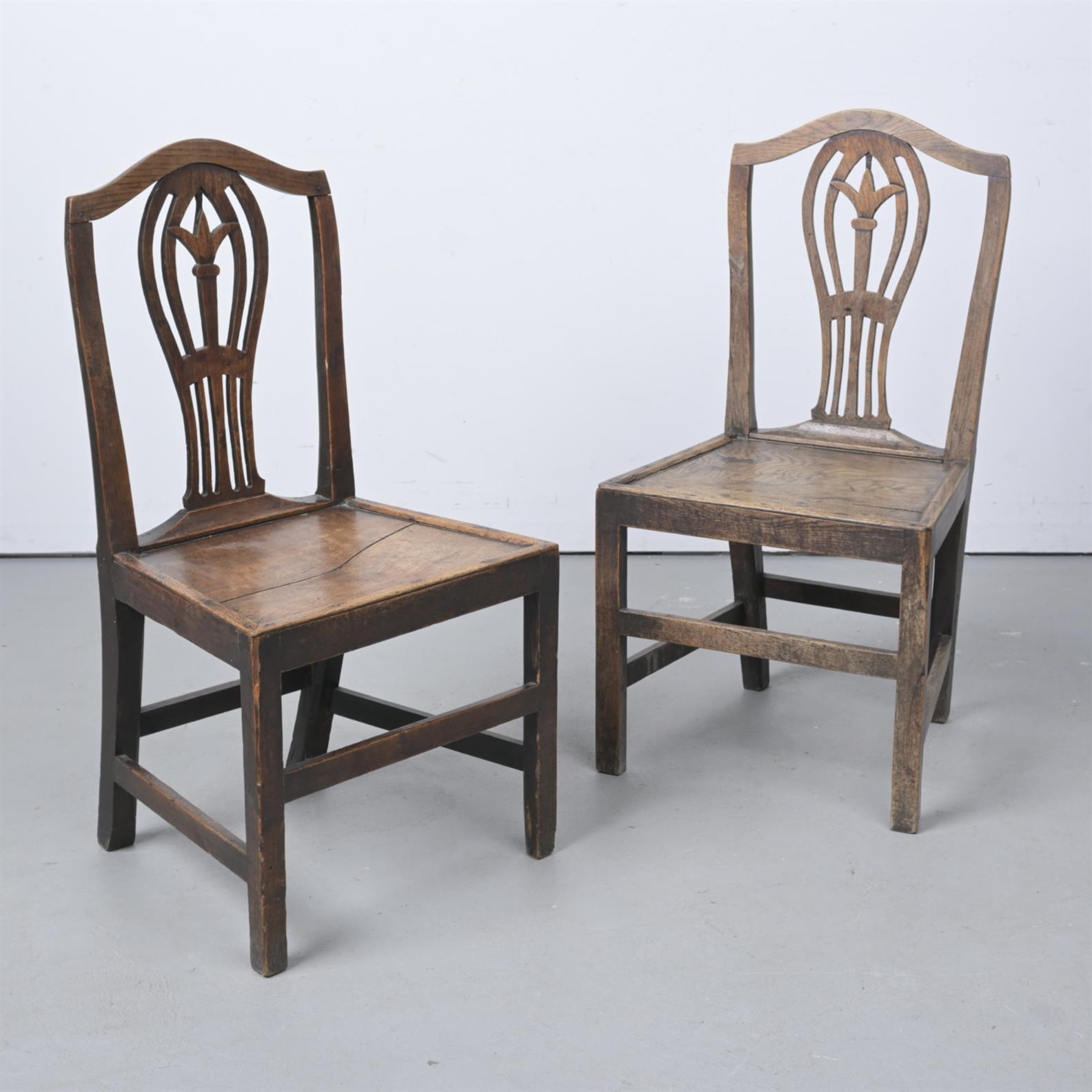 A PAIR OF PROVINCIAL GEORGE III ELM SIDE CHAIRS A/F (92H X 47W X 44D CM)