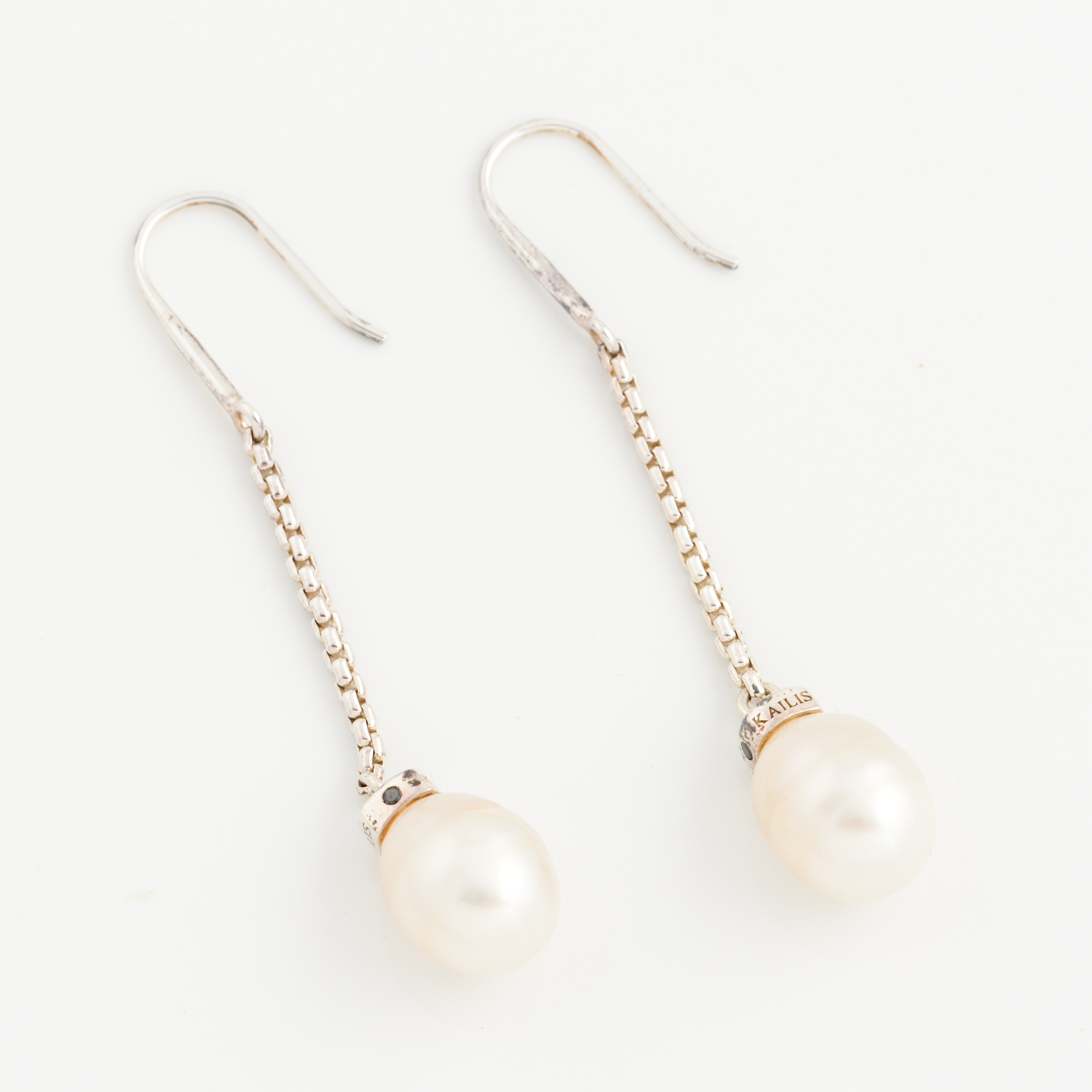 KAILIS, A PAIR OF PEARL EARRINGS TO SHEPHERD HOOK FITTINGS IN STERLING SILVER, 50MM