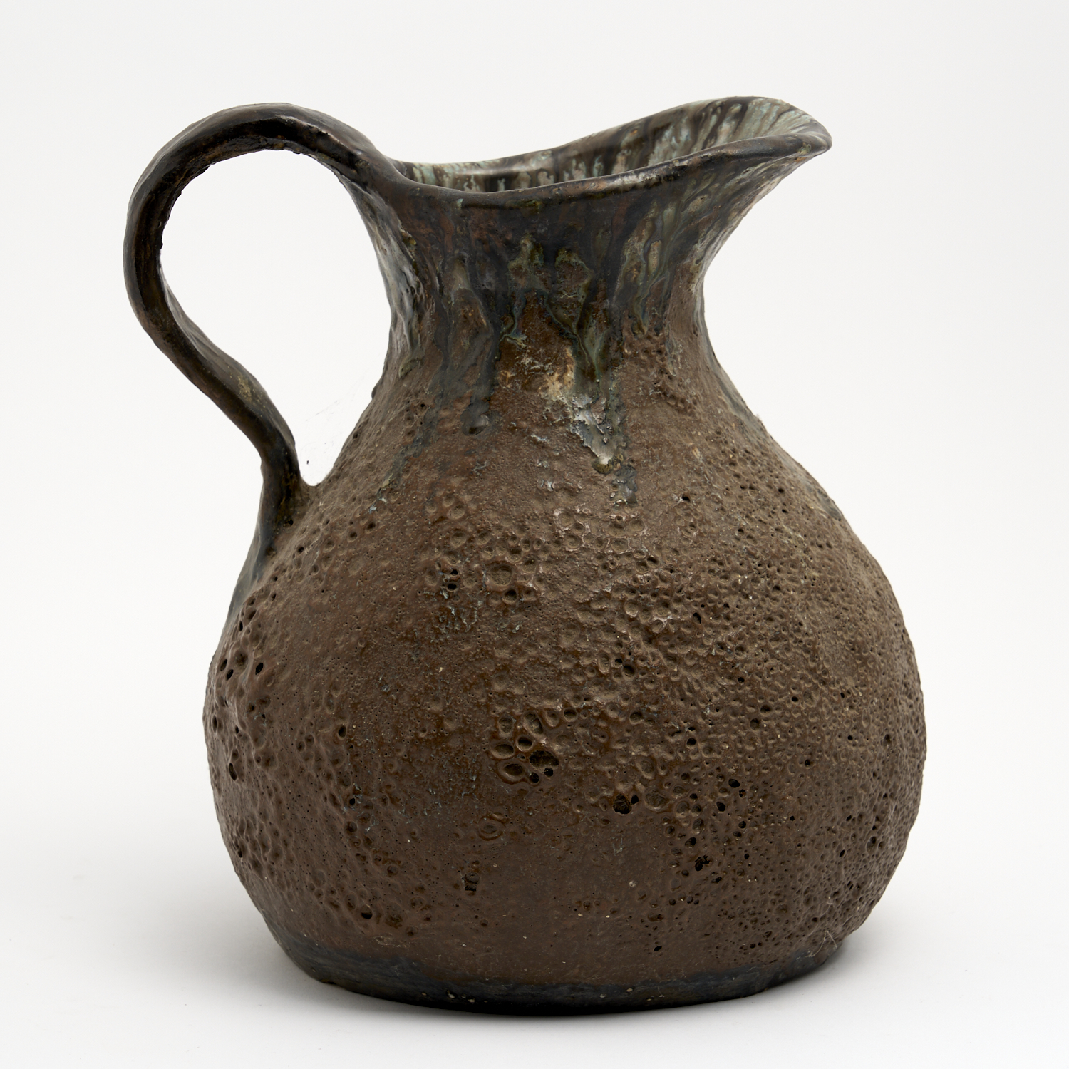 A LARGE HATTON BECK LAVA GLAZE POTTERY JUG H.31CM (TALLEST)