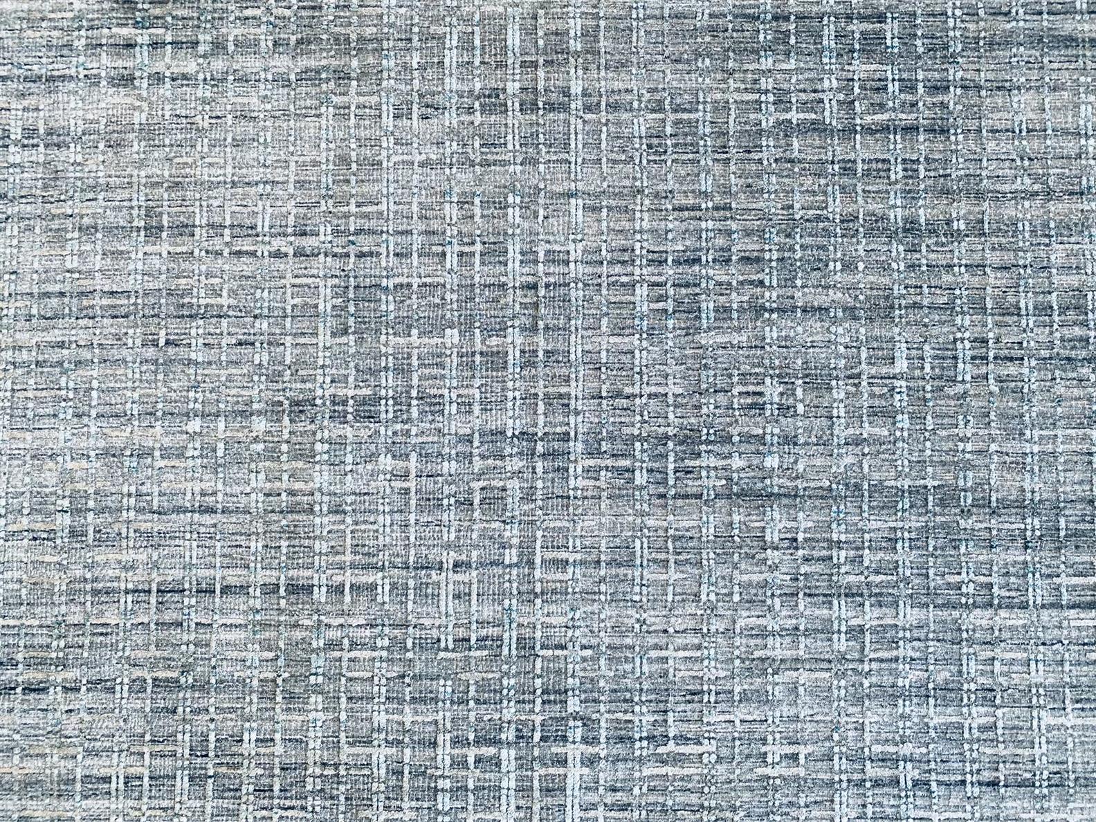A LARGE CONTEMPORARY LATTICE- PATTERNED CARPET IN SHADES IF GREY, BEIGE & BLUE. HANDMADE LOOM KNOT. SIZE: 300 X 250 CM – ORIGIN: AGRA