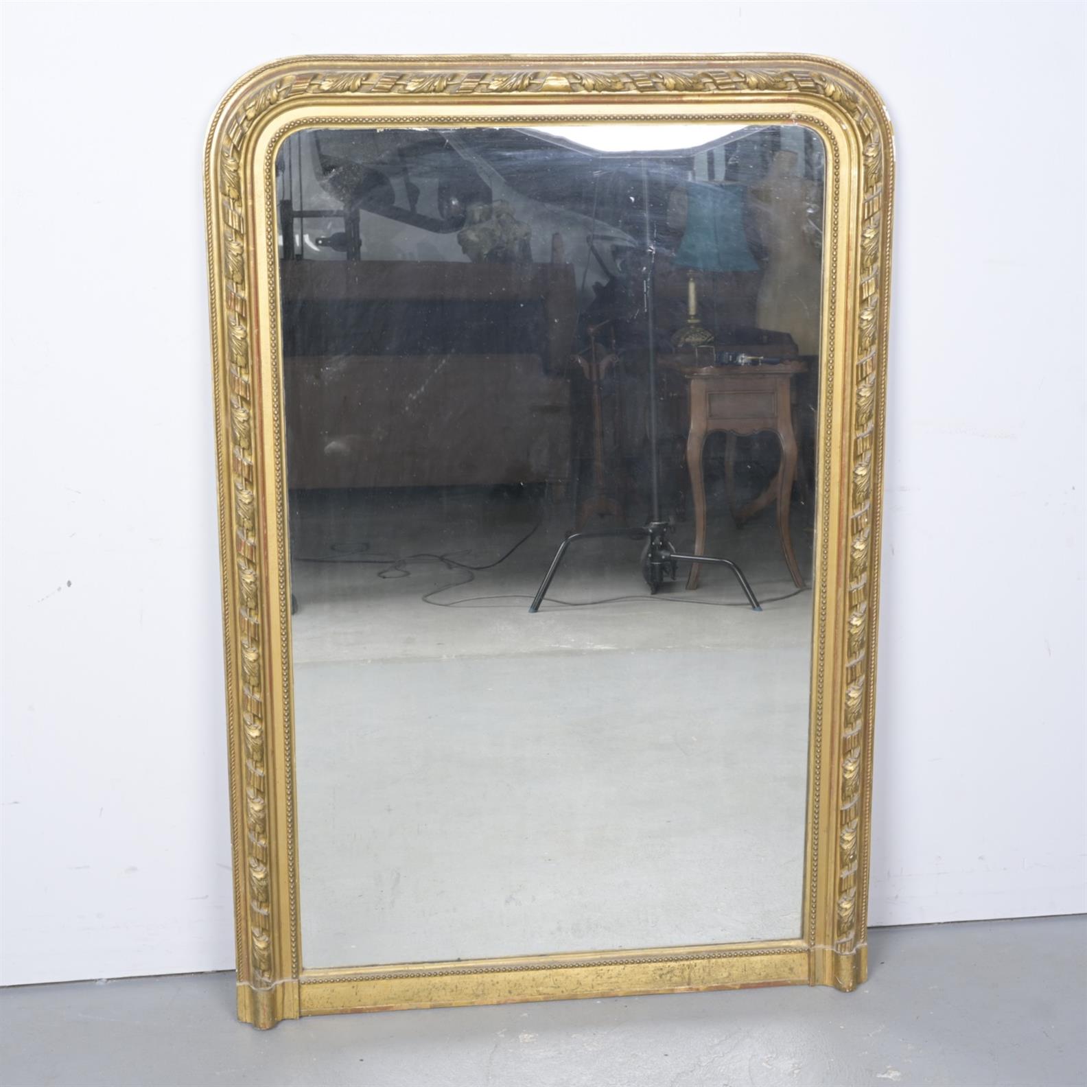 A LARGE GILT FRAMED OVERMANTLE MIRROR (156H X 107W CM)