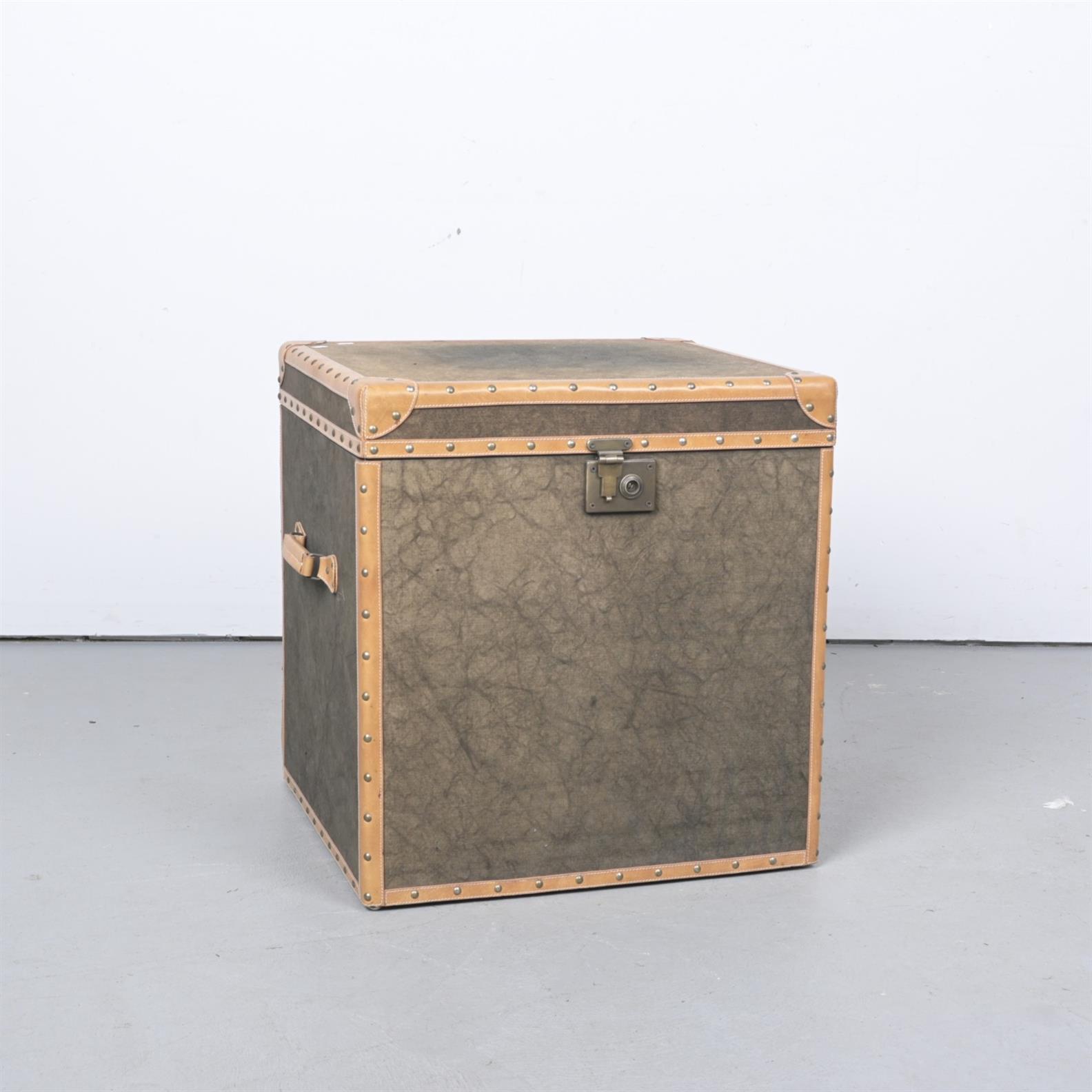 A TRUNK IN BROWN WITH LEATHER DETAIL (62CM H X 58CM W X 52CMD)
