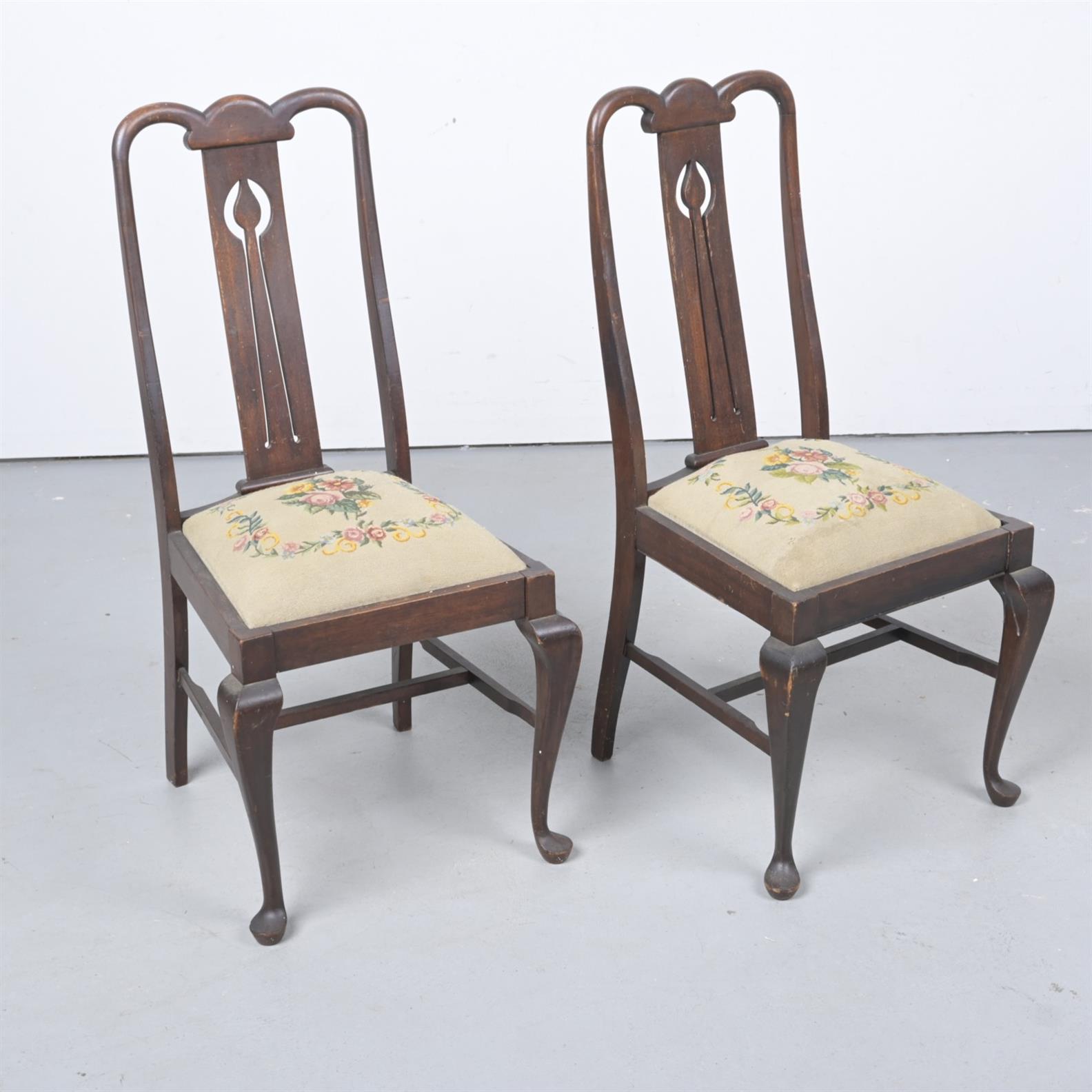 A PAIR OF EARLY 20th CENTURY SIDE CHAIRS IN ARTS AND CRAFTS GEORGIAN REVIVAL MANNER (A/F) (103CM H x 51CM W x 55CM D)