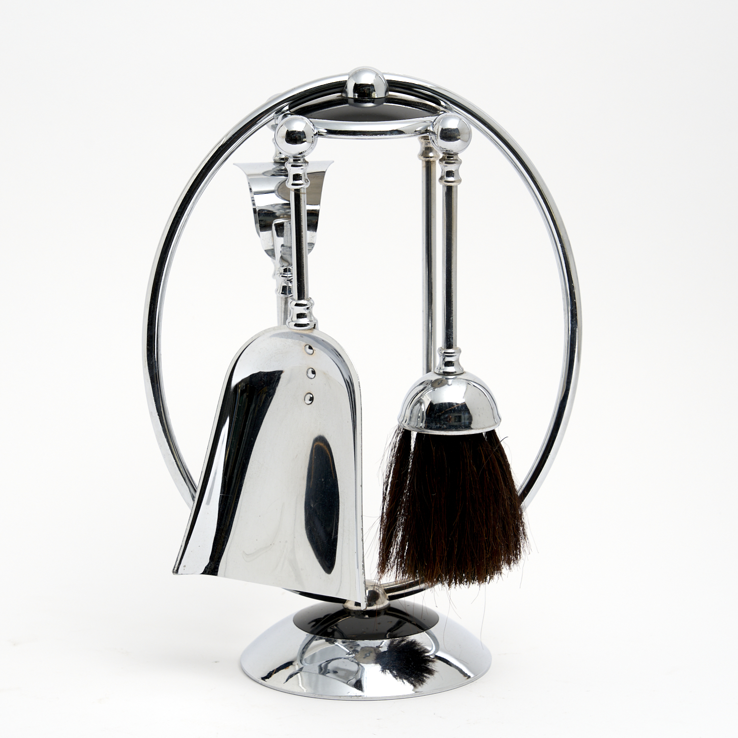 A SET OF IANTHE ART DECO CHROME FIRE TOOLS H.33CM