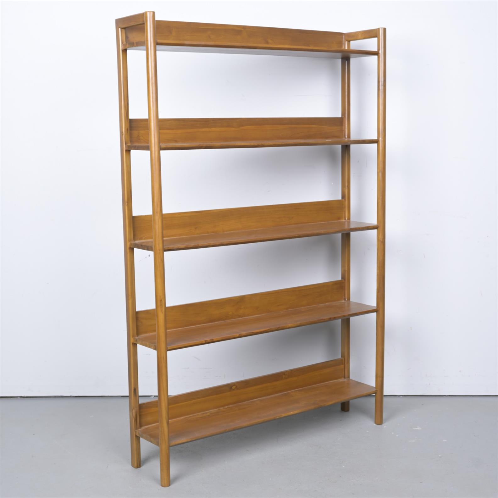 A TEAK OPEN BOOKCASE (180H X 121W X 27D CM)