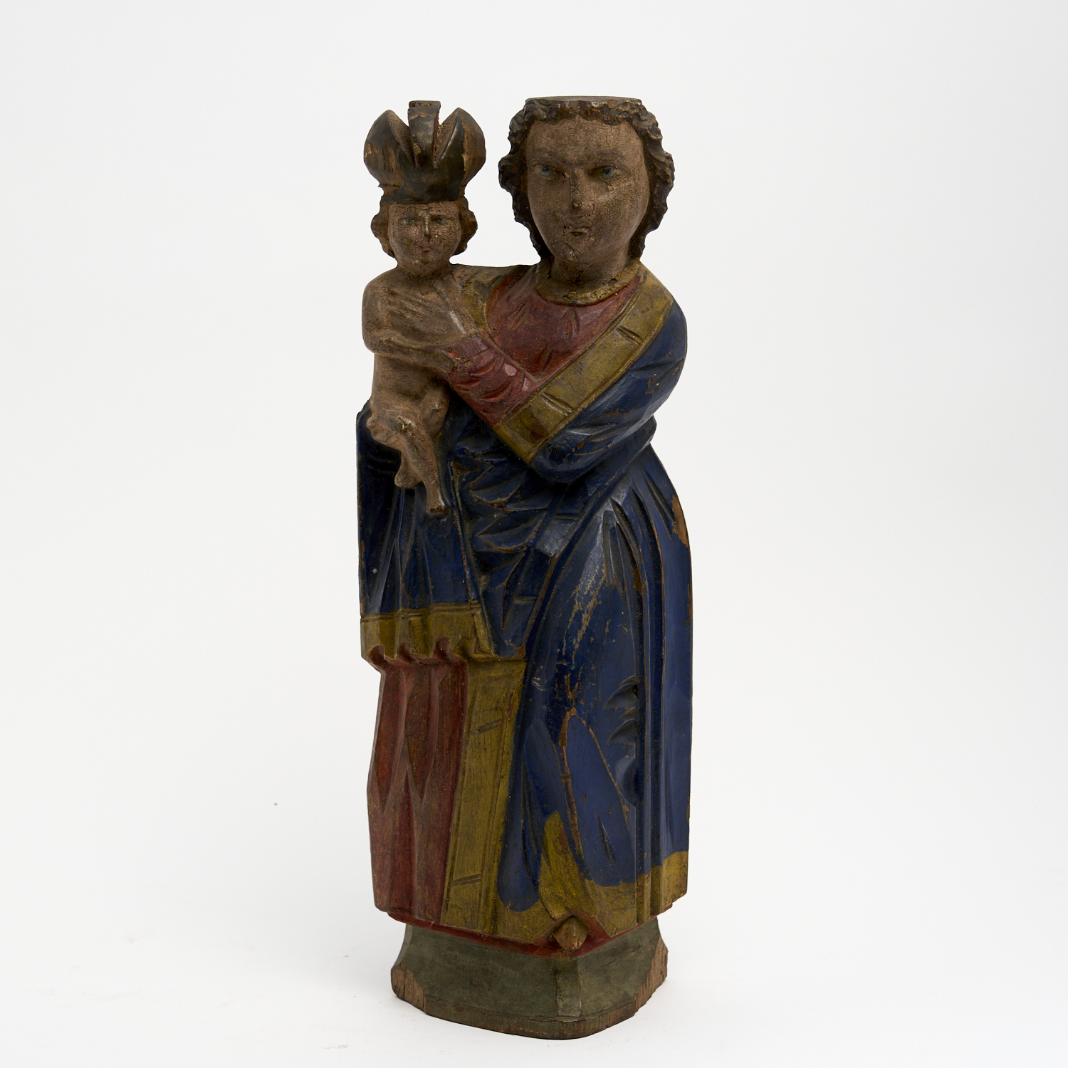 AN ANTIQUE CARVED POLYCHROME RELIGIOUS FIGURAL GROUP H.45CM