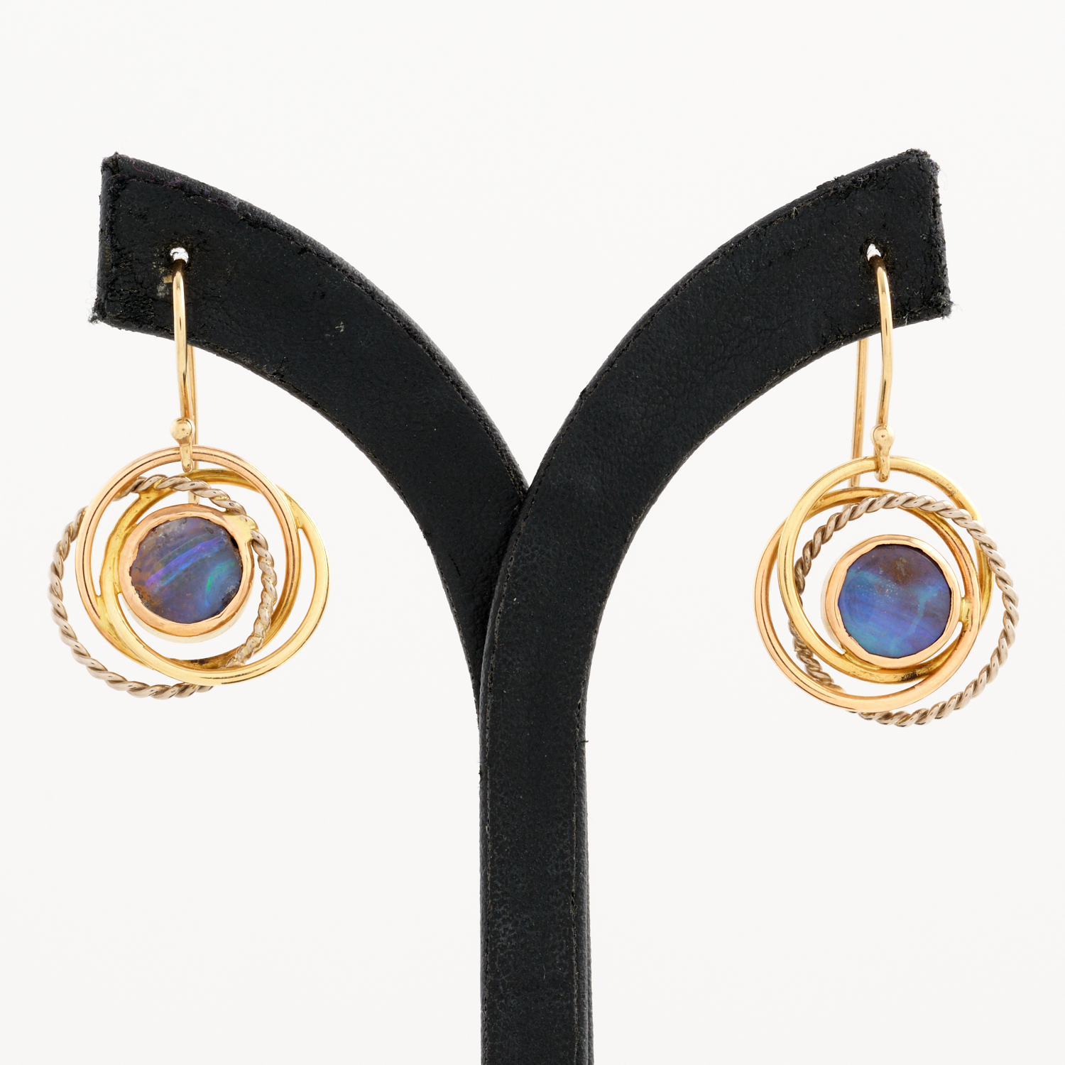 A PAIR OF OPAL EARRINGS IN 18CT GOLD TO SHEPHERD HOOK FITTINGS, 20MM, 7.2GMS