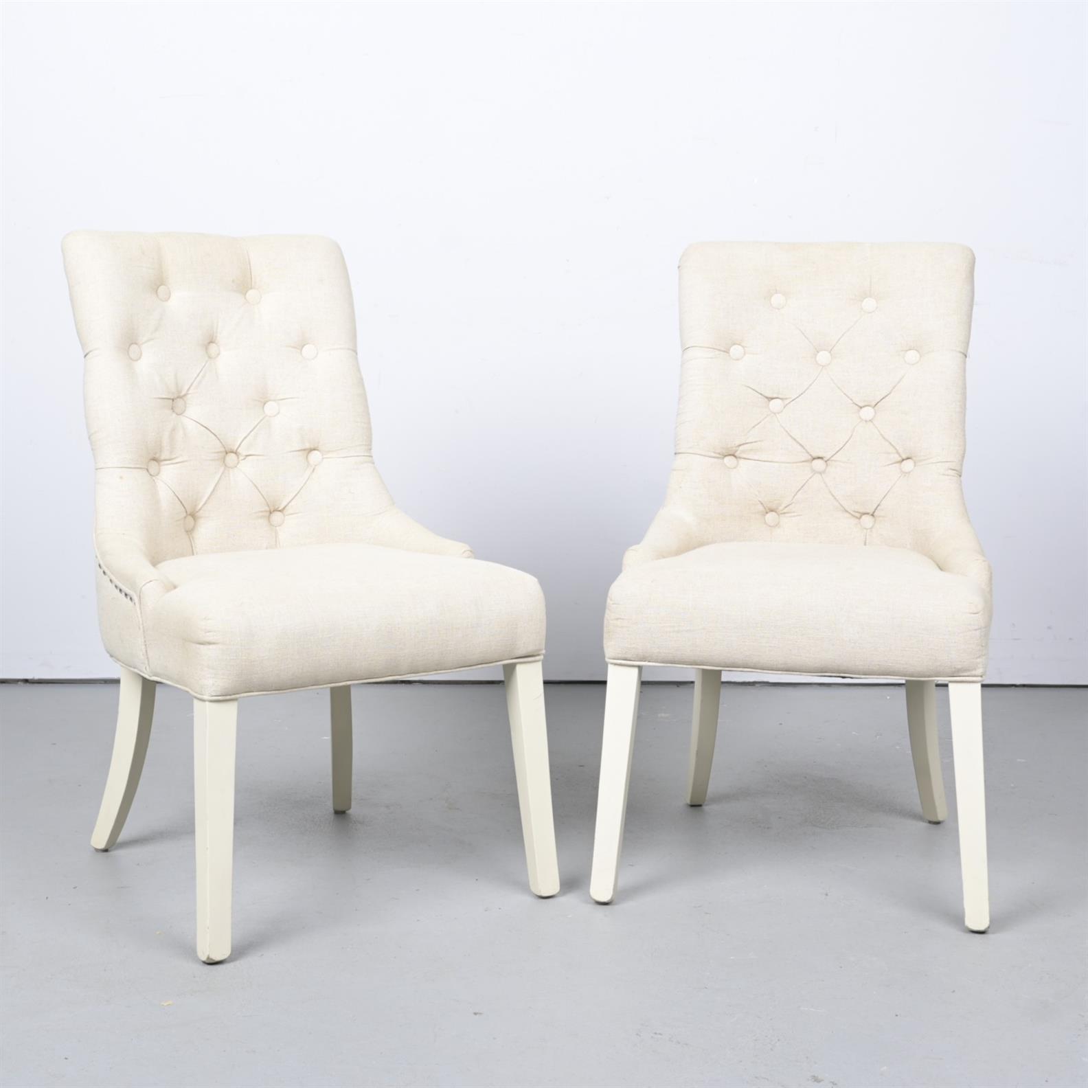 A PAIR OF UPHOLSTERED CHAIRS (96CM H X 54CM W)