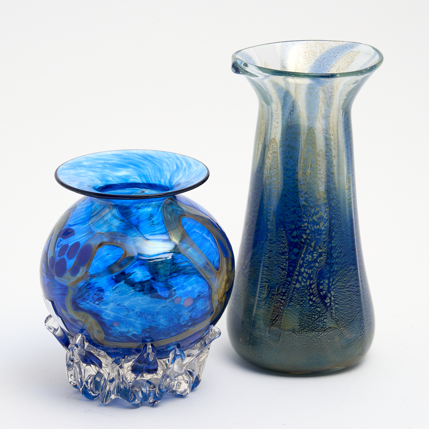 A SIGNED GENE POLT ART GLASS VASE TOGETHER WITH A SEAVIEW STUDIO ART GLASS VASE H.19CM