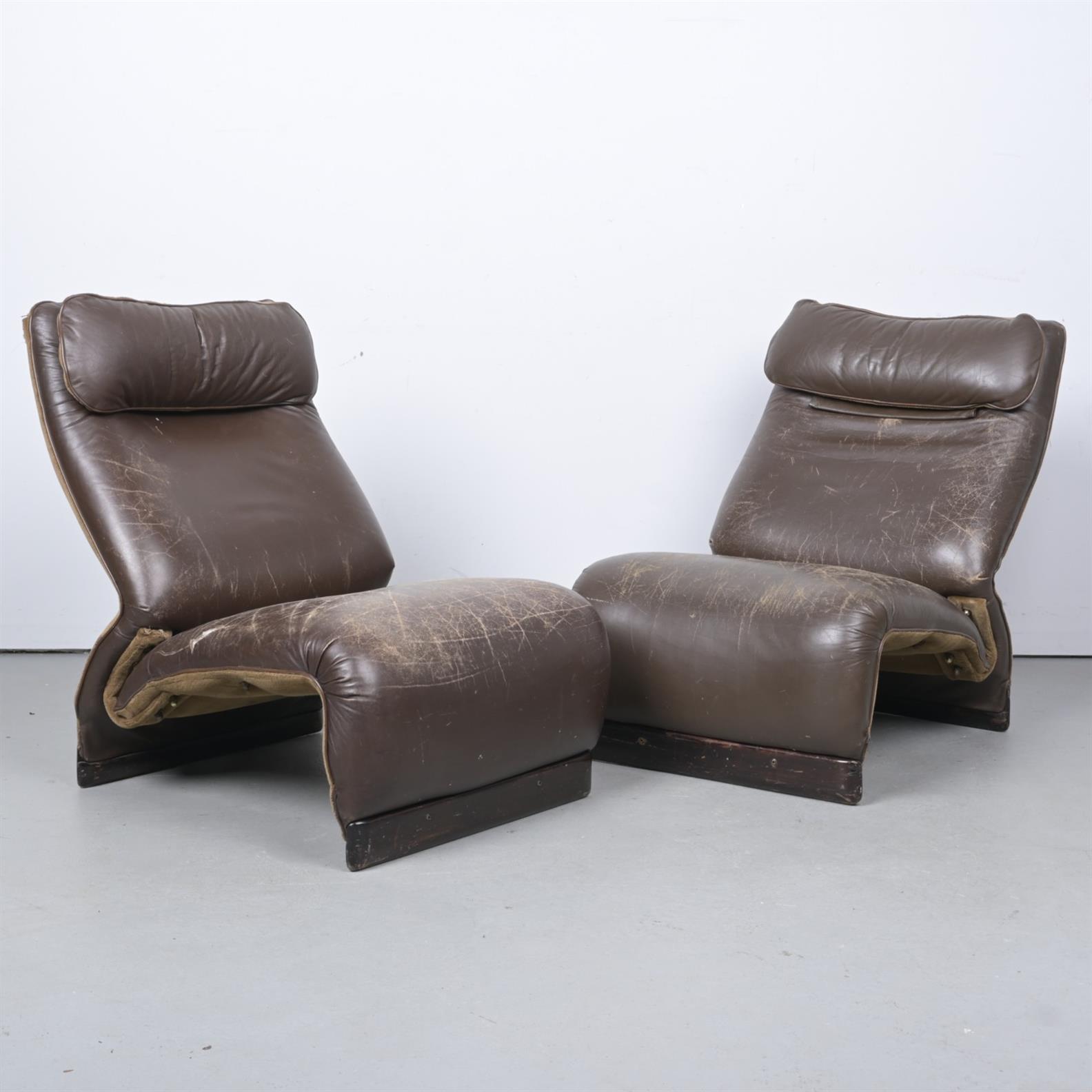 A PAIR OF LEATHER LOUNGE CHAIRS A/F (87H X 65W X 81D CM)
