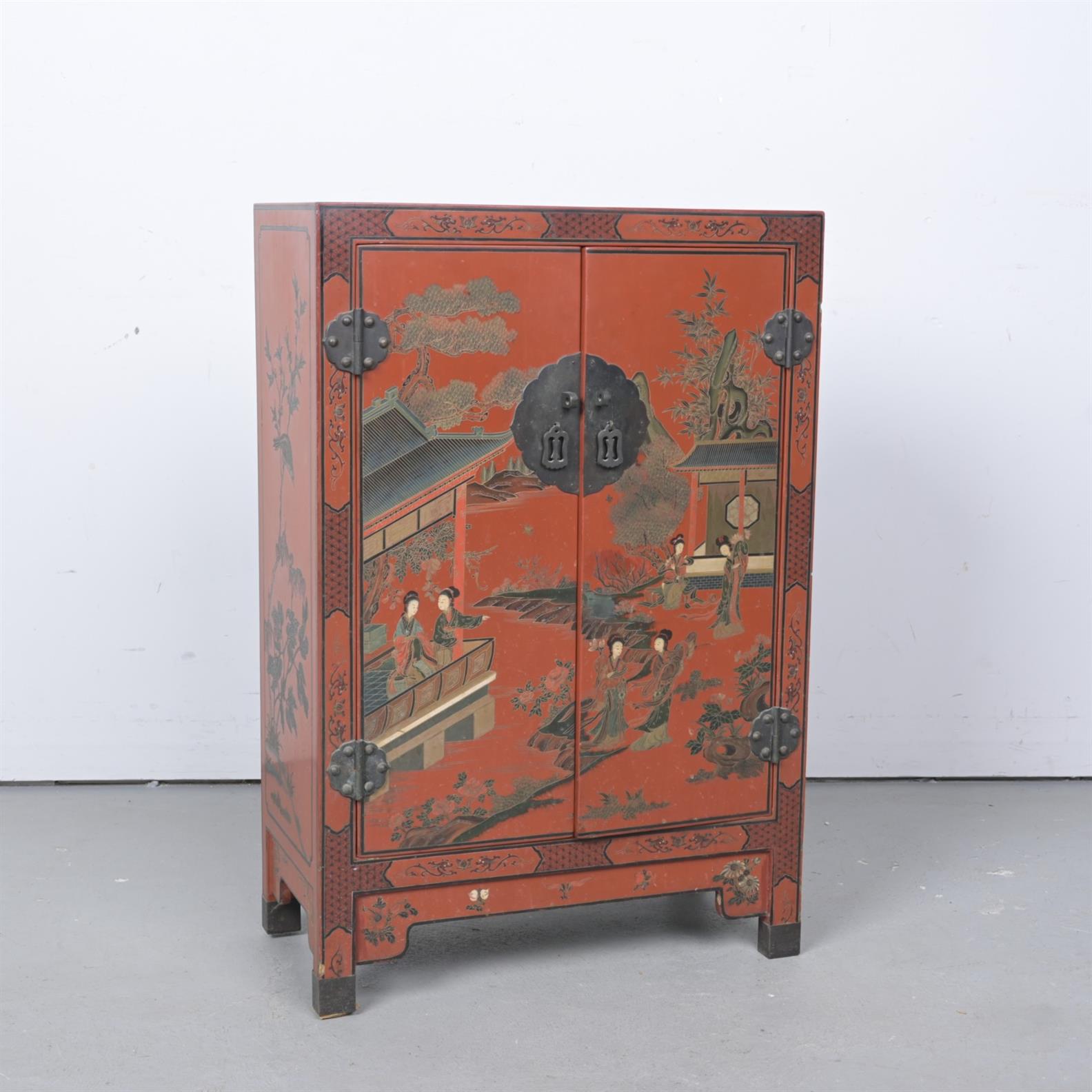 A SMALL CHINESE LACQUERED TWO-DOOR CABINET (92CM H X 61CM W X 31CM D)