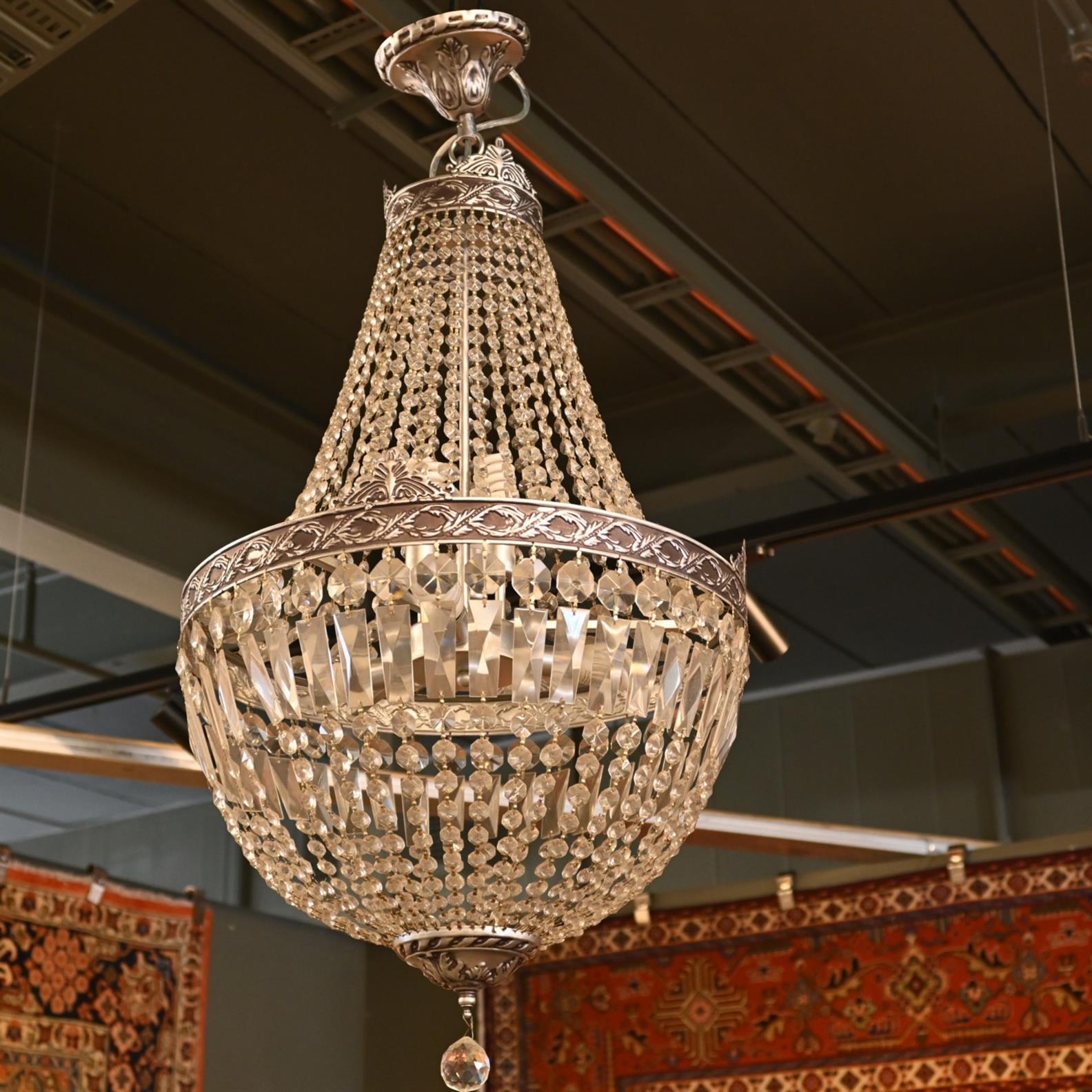A CUT GLASS BASKET CHANDELIER (105H X 66DIA CM)