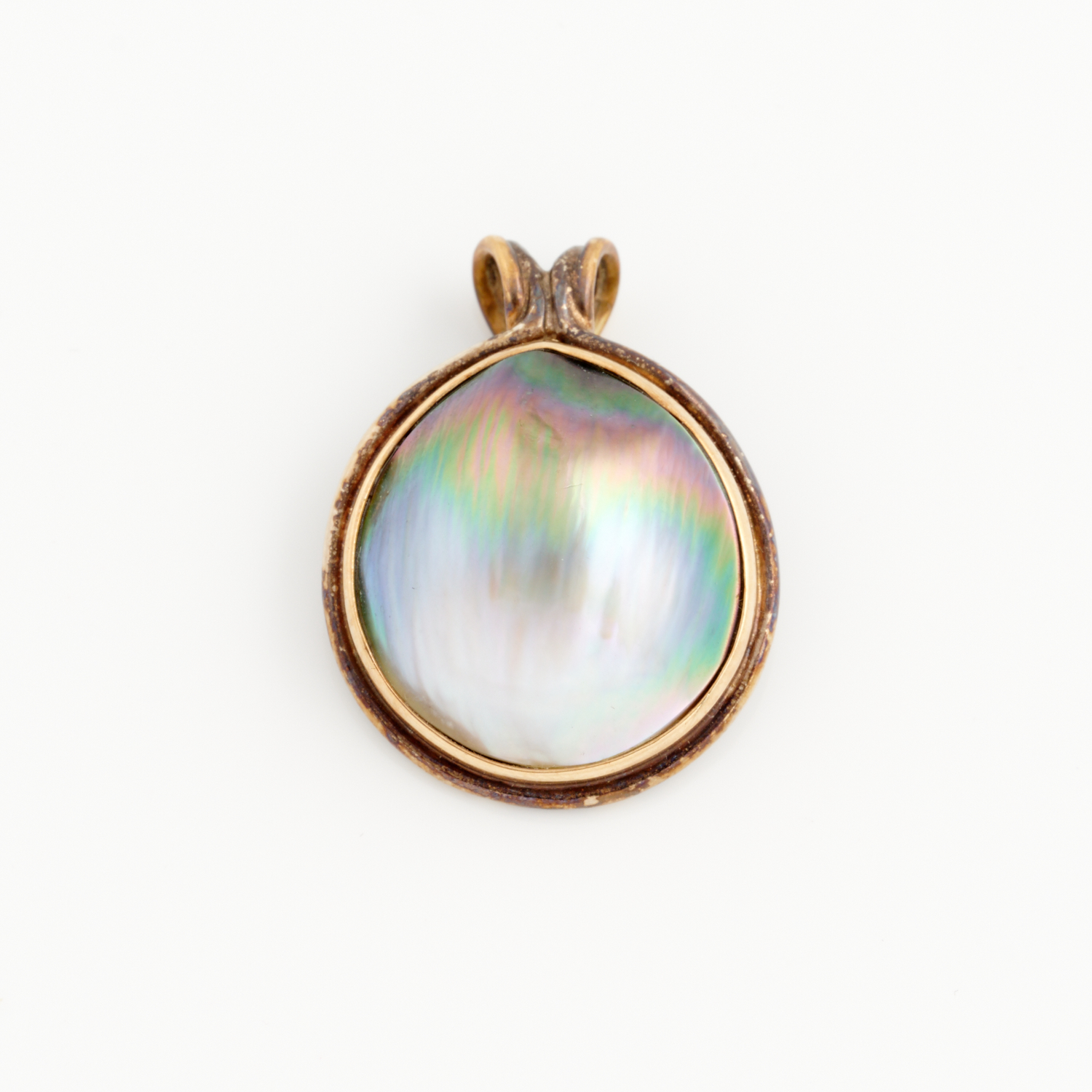 A TAHITIAN BLISTER PEARL PENDANT IN GOLD TONE METAL, 25MM