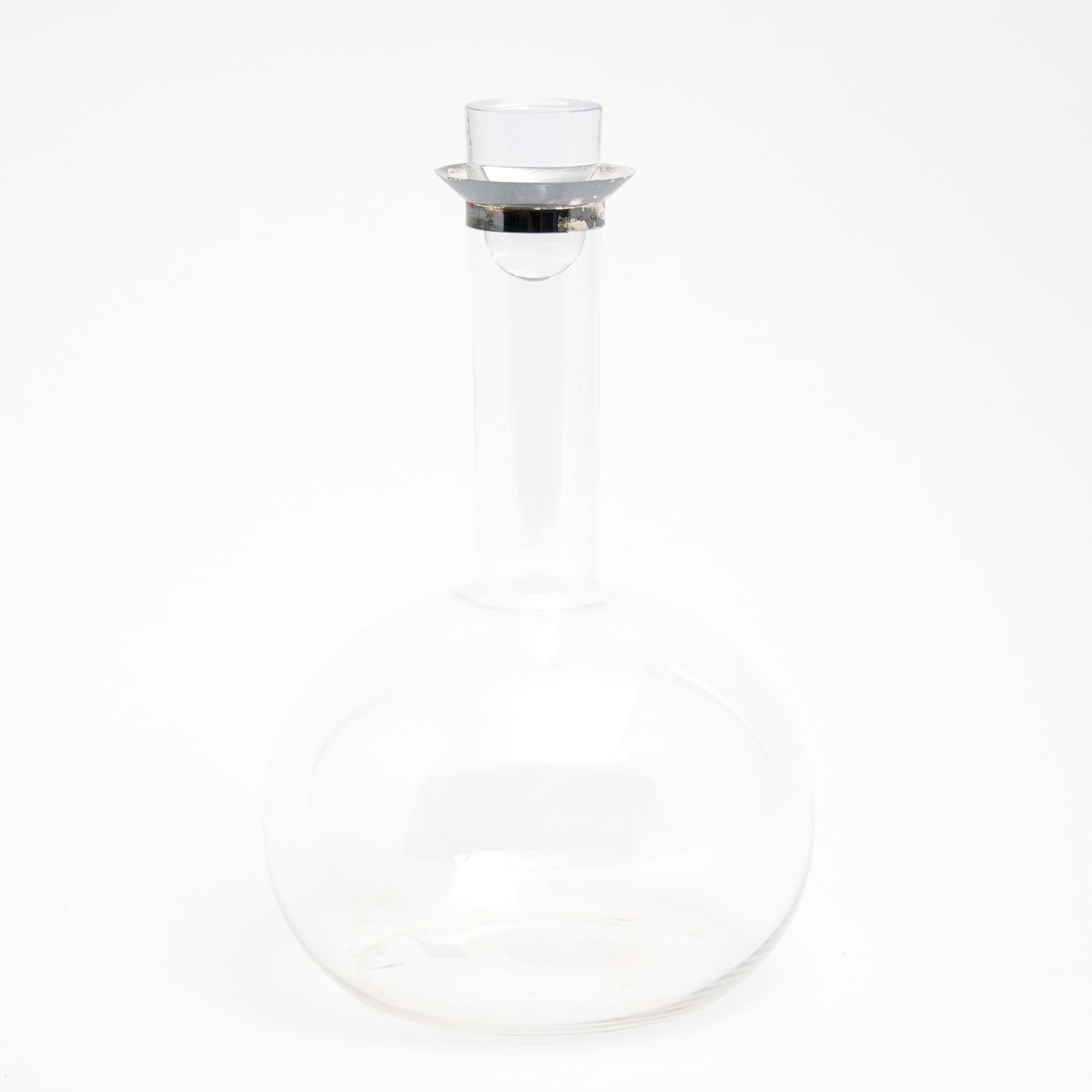 A SMALL GEORG JENSEN STERLING SILVER MOUNTED DECANTER H.21CM