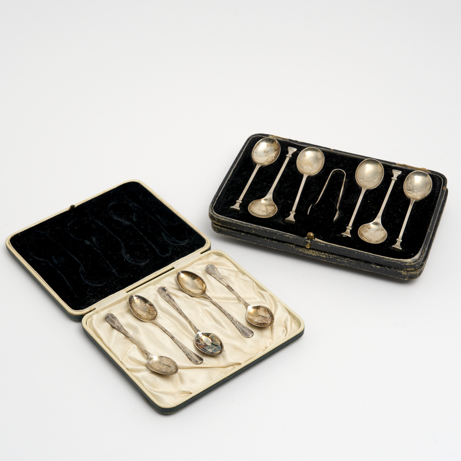 TWO BOXED SETS OF STERLING SILVER TEASPOONS 102G