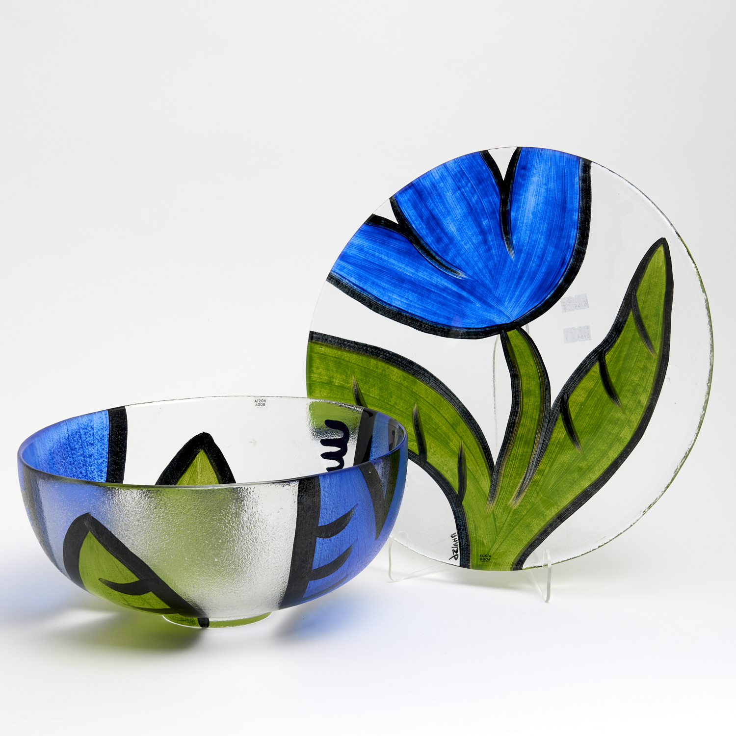 A KOSTA BODA ULRICA HYDMAN VALLIAN TULIP BOWL AND PLATE DIA.32CM