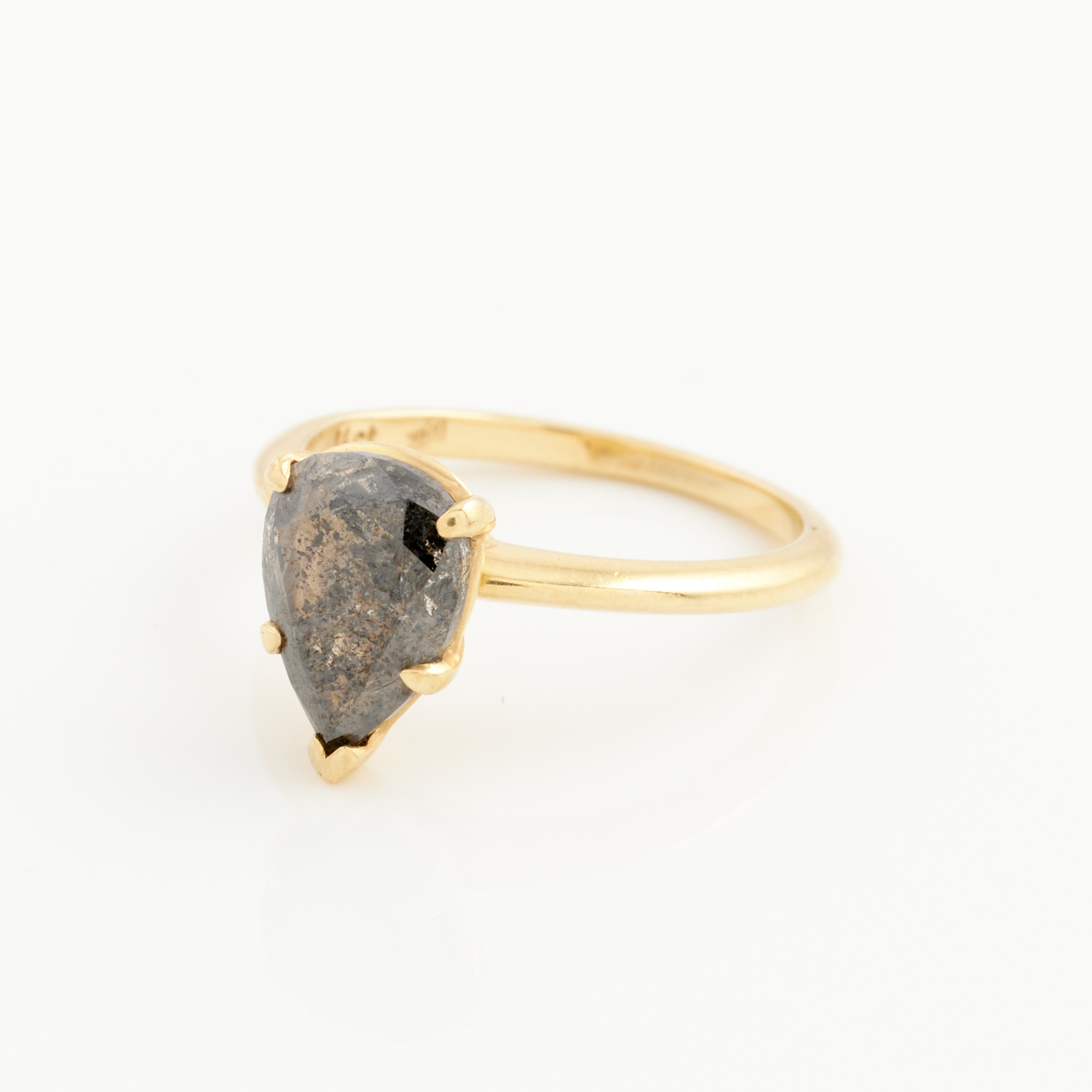 A SALT AND PEPPER DIAMOND RING IN 14CT GOLD, SIZE , 2.6GMS