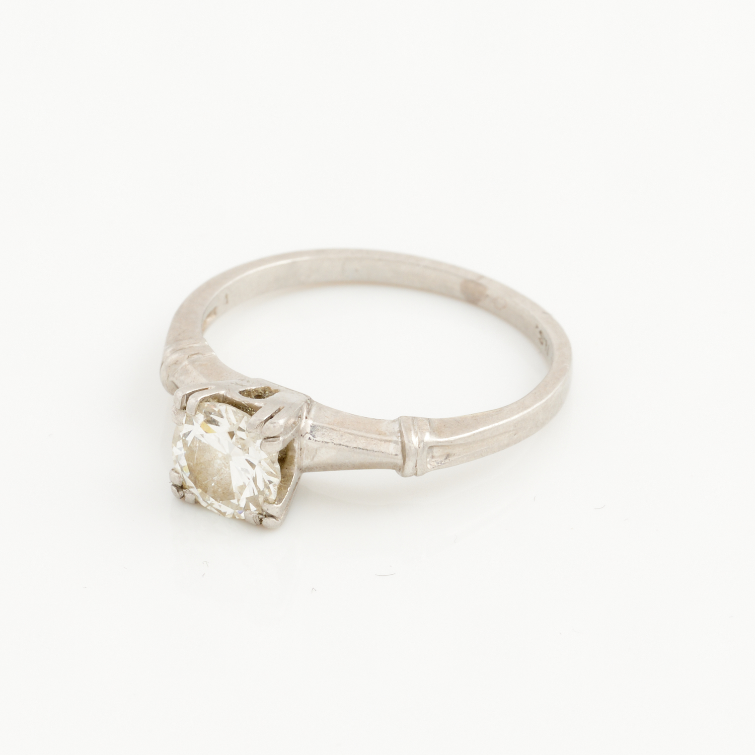 A DIAMOND RING IN PLATINUM, THE DIAMOND WEIGHING APPROXIMATELY 0.40CTS, SIZE L, 3.4GMS