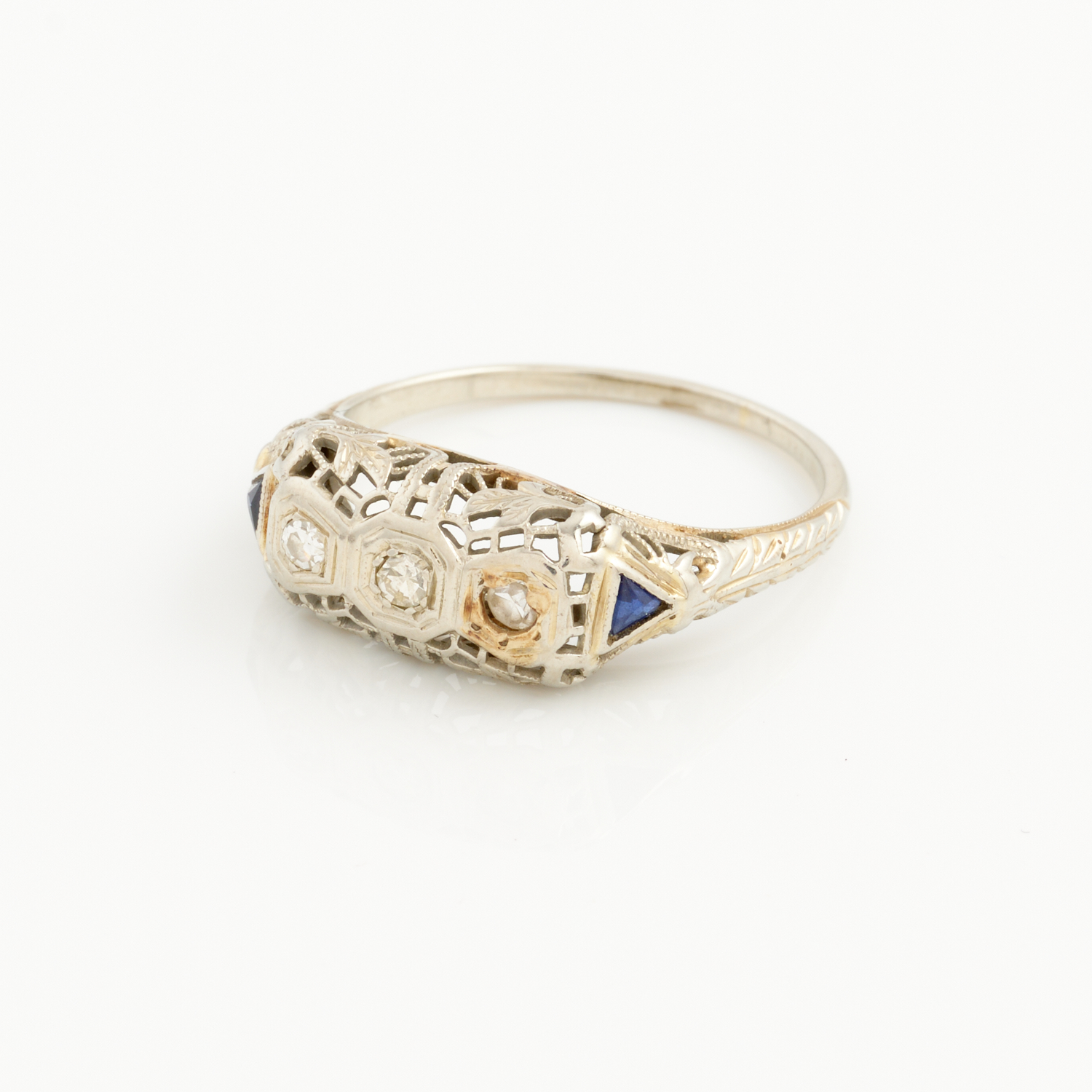 AN OPENWORK DIAMOND RING IN 18CT WHITE GOLD, SIZE O, 2.7GMS