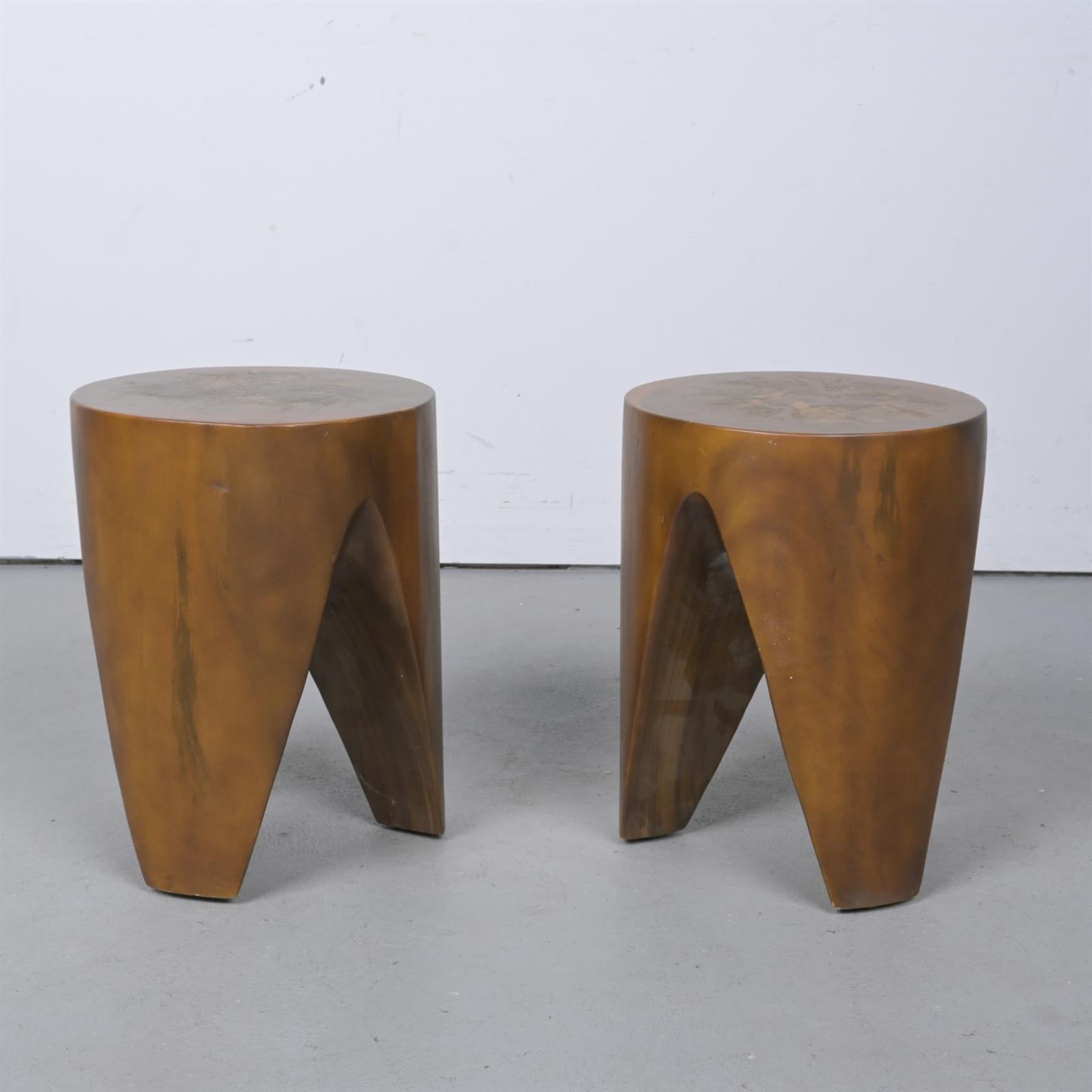 A PAIR OF SOLID TIMBER SIDE TABLES (47H X 36DIA CM)