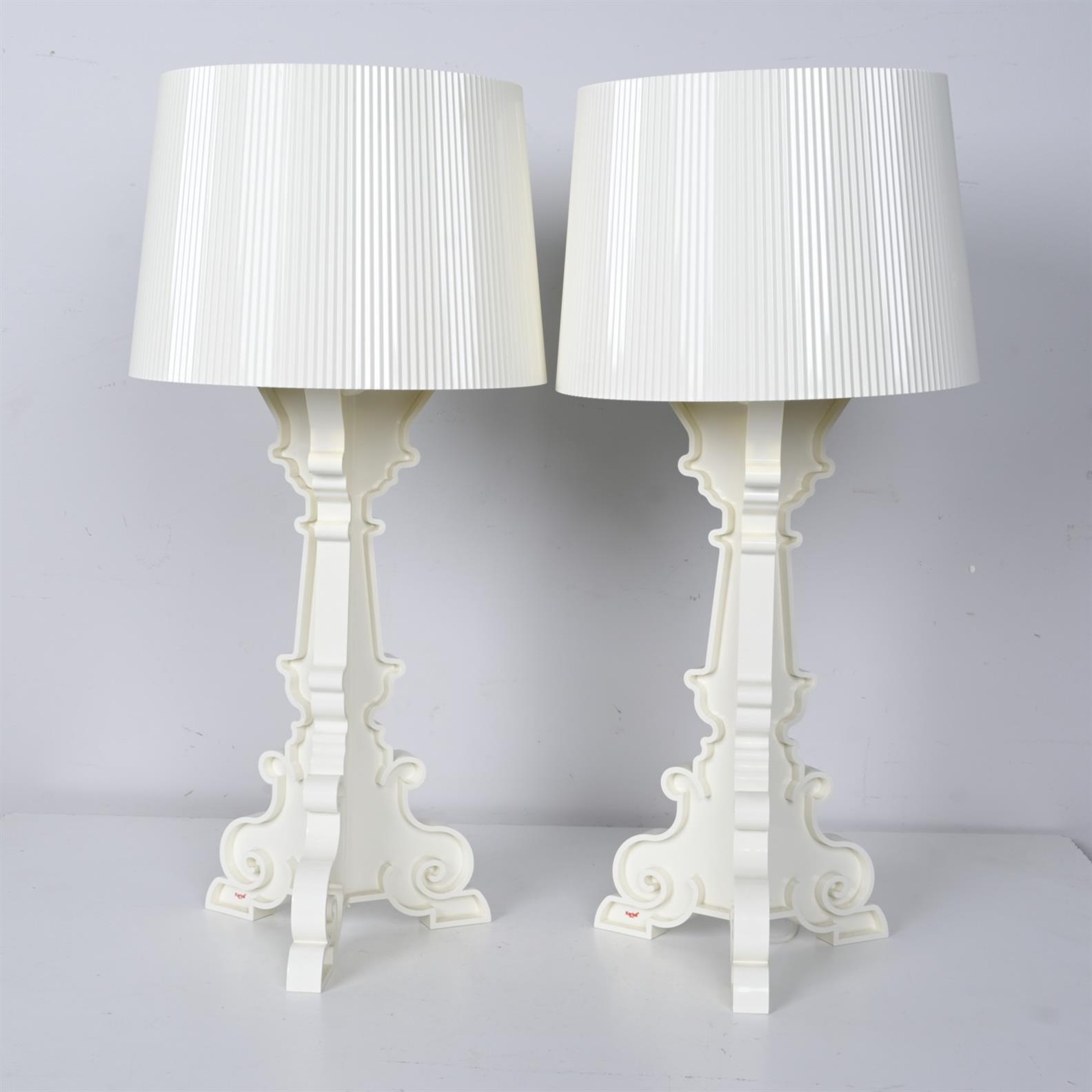 A PAIR OF WHITE KARTELL BOURGIE TABLE LAMPS (78CM H)