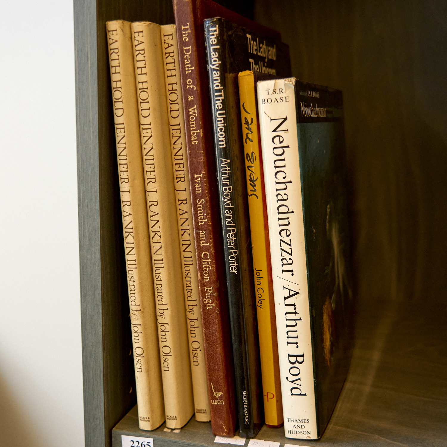 A SMALL GROUP OF SIGNED AND/OR LIMITED EDITION BOOKS INCLUDING DEATH OF A WOMBAT (4/100, SIGNED BY WITH SMALL DRAWING BY CLIFTON PUGH), THE LADY AND THE UNICORN (SIGNED BY ARTHUR BOYD, 47/250 RESERVED FOR THE ARIST, POET AND PUBLISHER), TOGETHER WITH THREE COPIES OF 'EARTH HOLD' (TWO SIGNED BY JENNIFER RANKIN) AND JANE EVANS, SIGNED COPY.