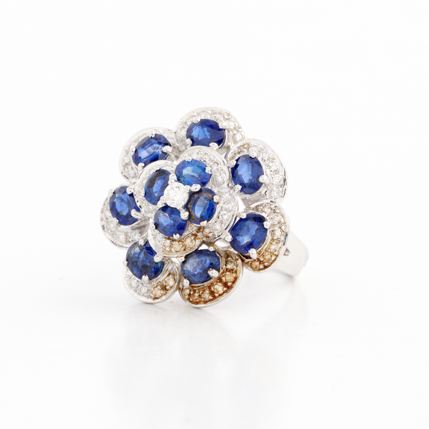 A SAPPHIRE AND DIAMOND RING IN 18CT WHITE GOLD