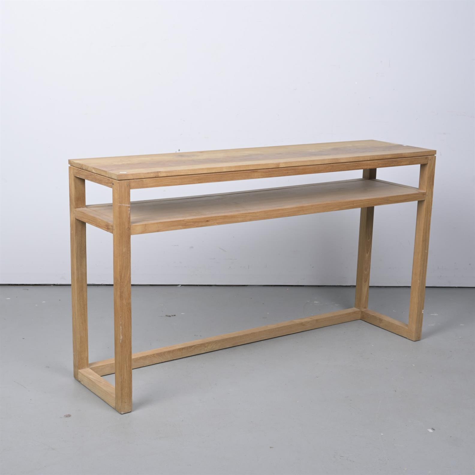 A CONTEMPORARY TWO TIER CONSOLE (86CM H X 150CM W X 40CM D)