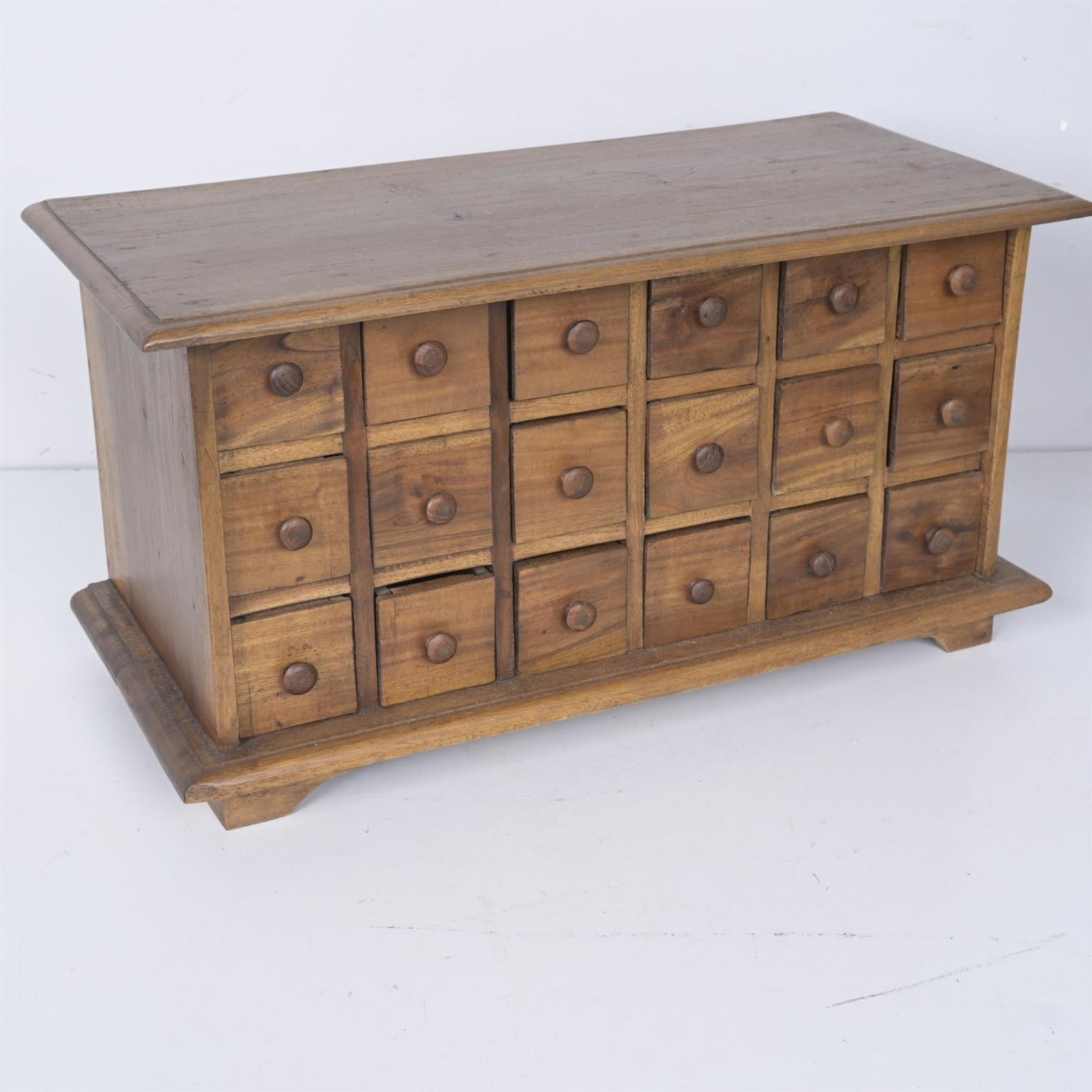 A SMALL HARDWOOD CABINET OF EIGHTEEN DRAWERS (35CM H X 65CM W X 30CM D)