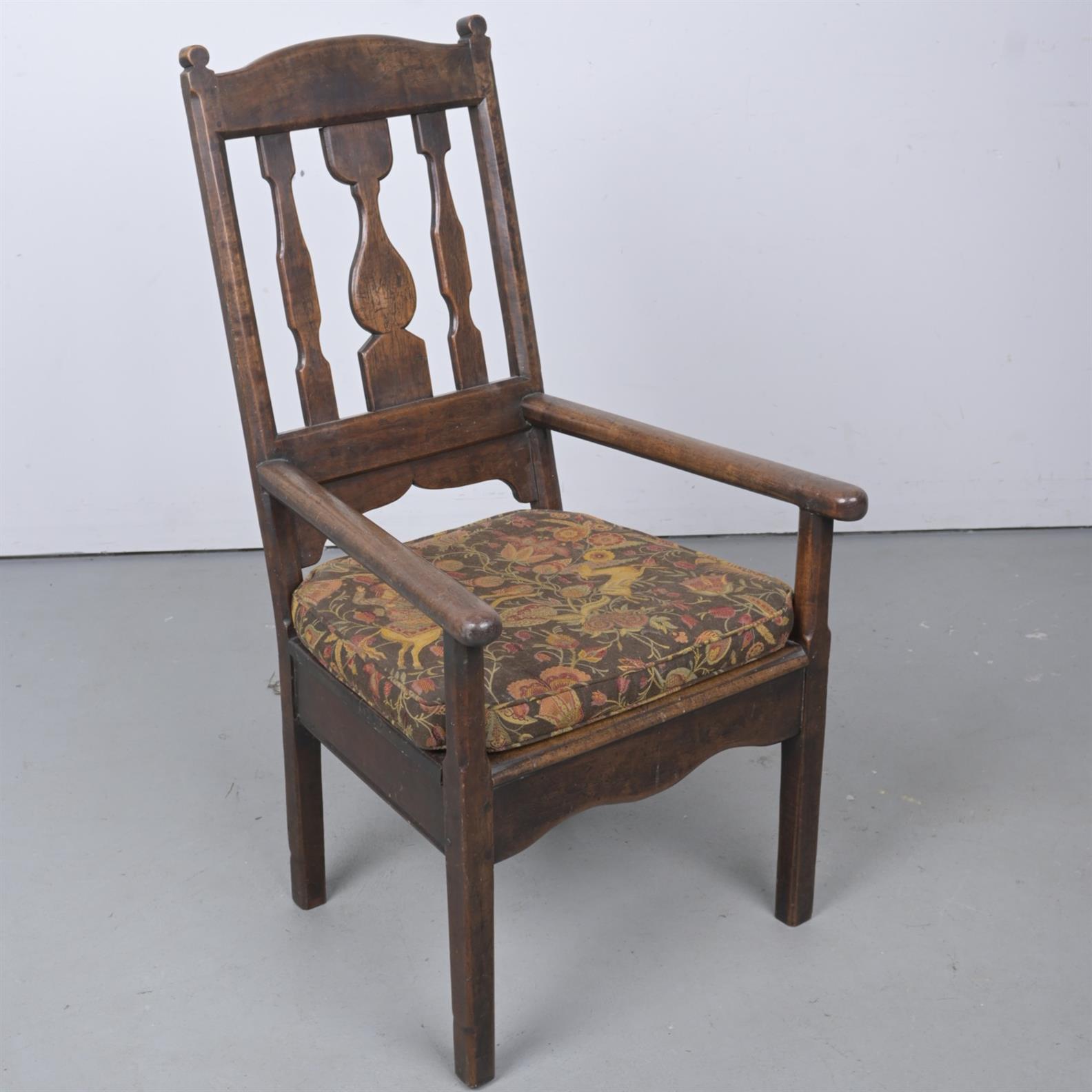 A PROVINCIAL GEORGE III MAHOGANY ELBOW CHAIR , WITH A LATER LOOSE SEAT CUSHION (111CM H X 62CM W X 60CM D)