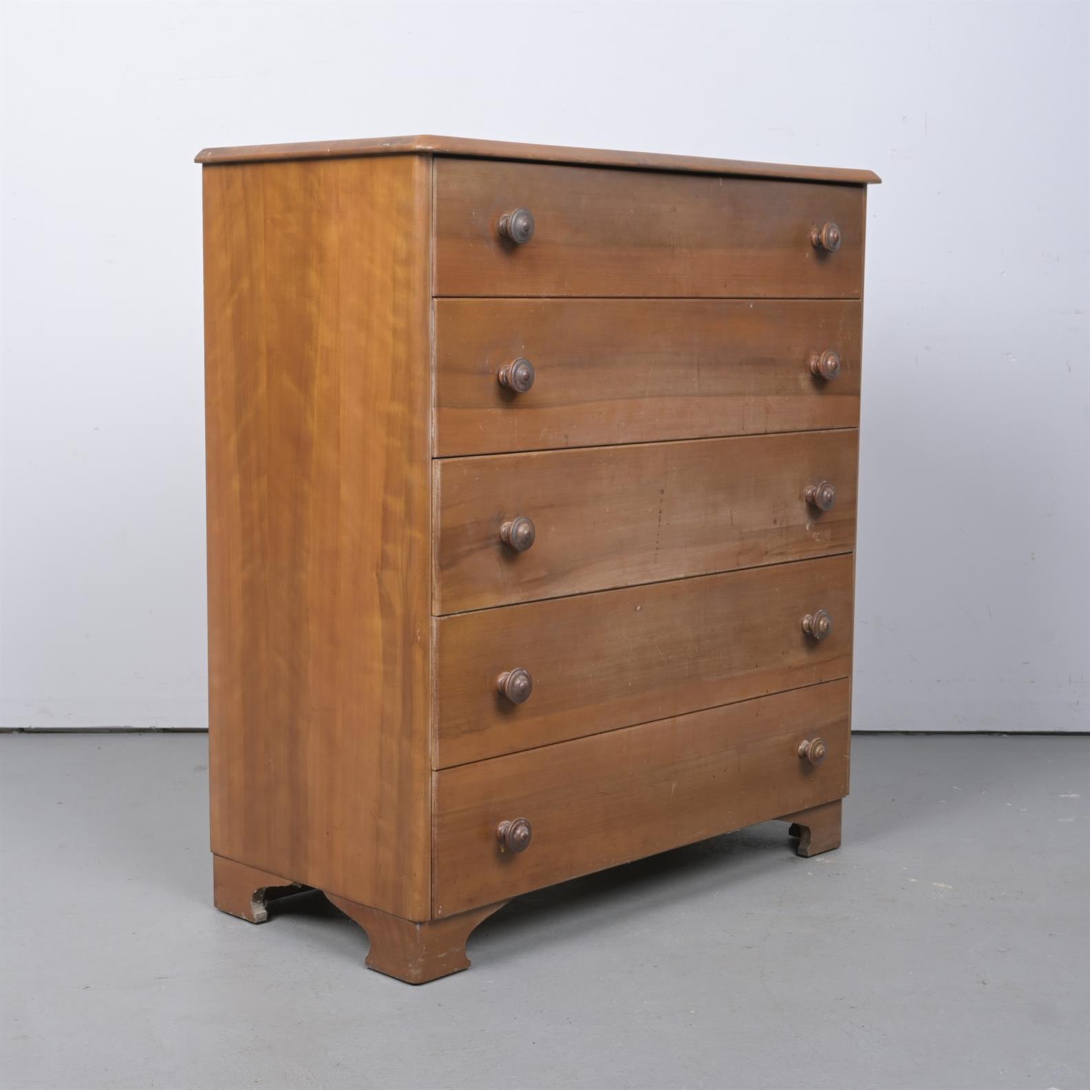 A 1960S MYRTLE CHEST OF DRAWERS (106CM H X 94CM W X 46CM D) (THIS ITEM MUST BE REMOVED BY CARRIERS AT THE CUSTOMER'S EXPENSE. LEONARD JOEL STAFF CANNOT ASSIST CARRYING THIS ITEM)