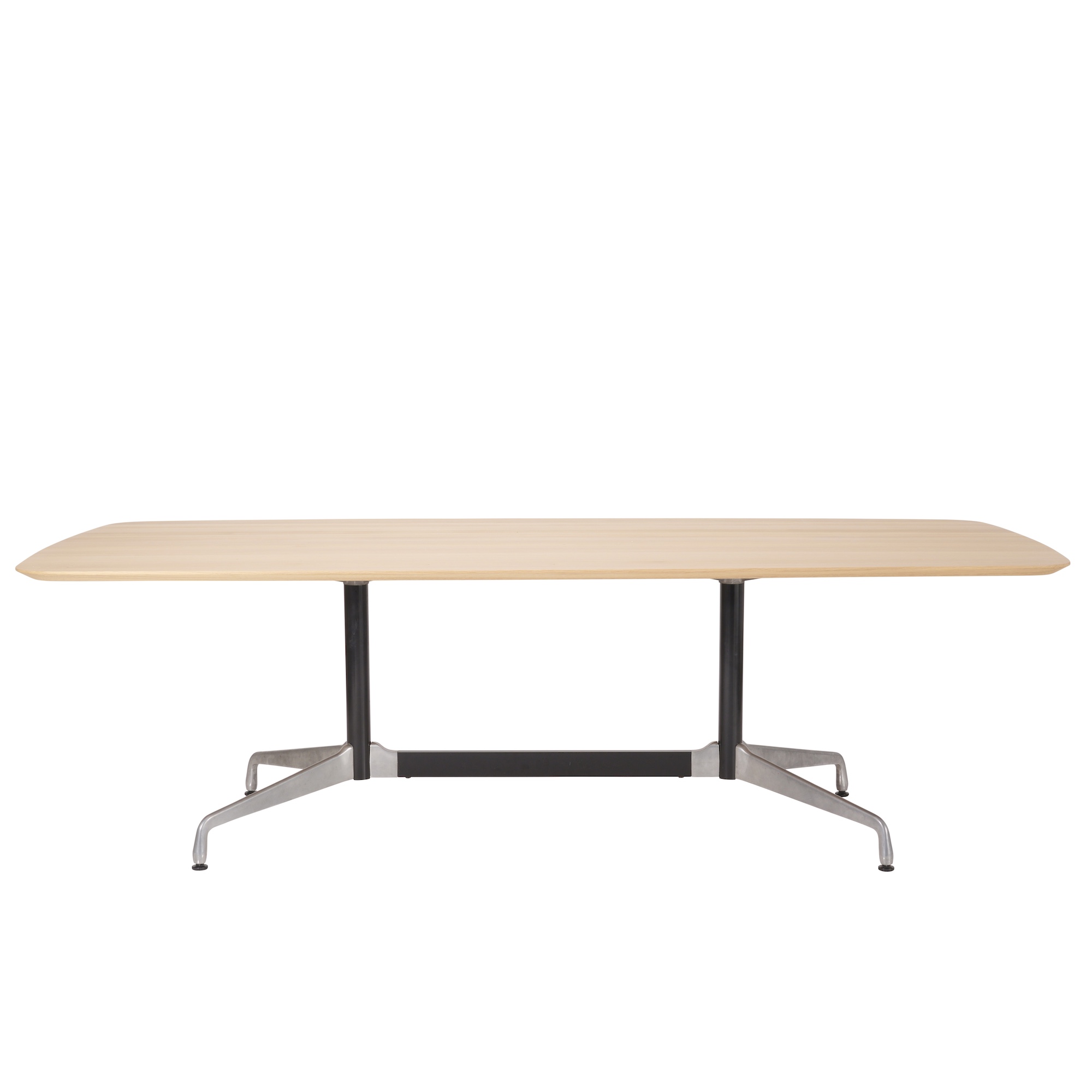 Aluminium segmented base with rectangular oak top.