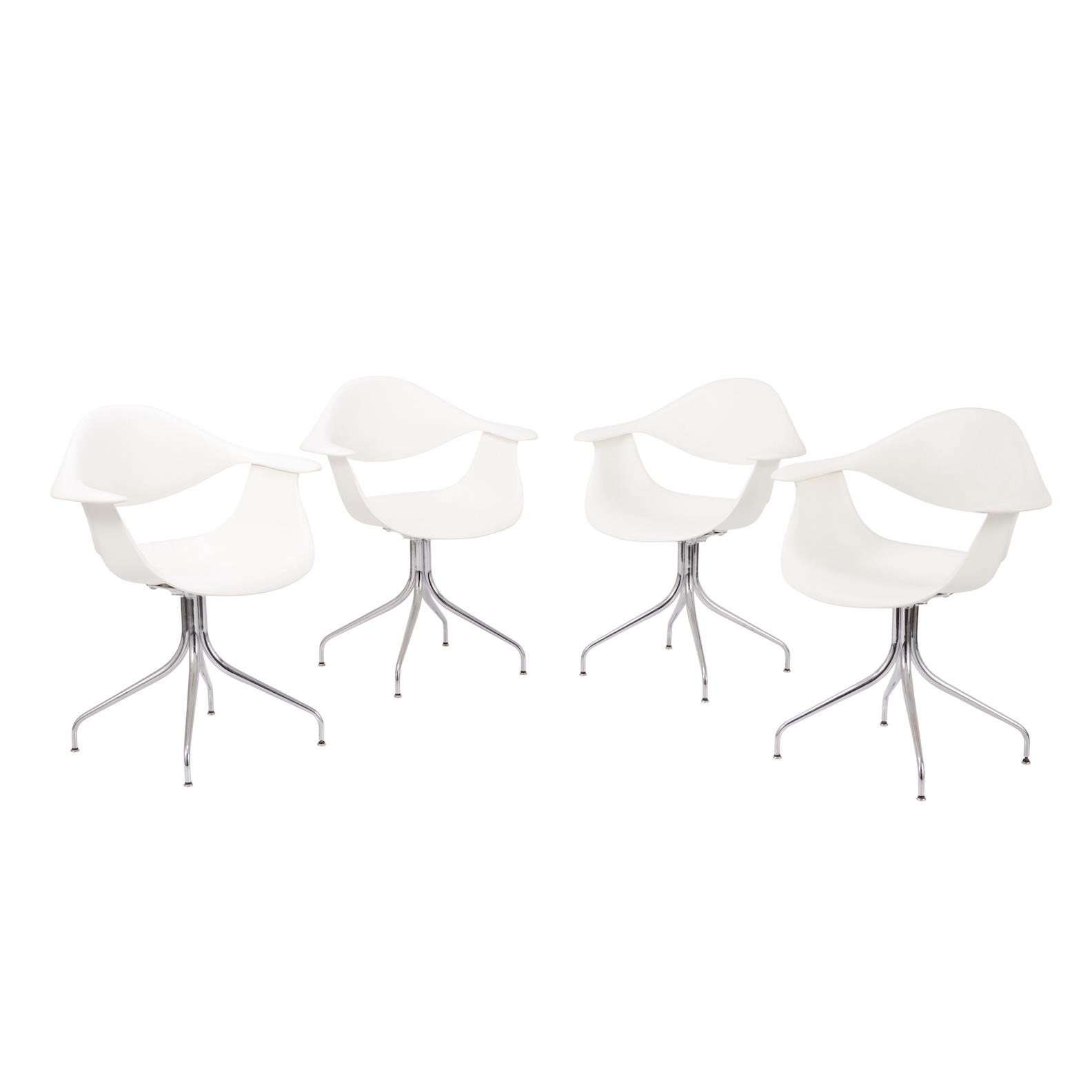 Chrome legs retain original polished appearance with little to no visible signs of patination. The moulded plastic remains free from enhanced markings, with only slight surface scratches noted on each piece.