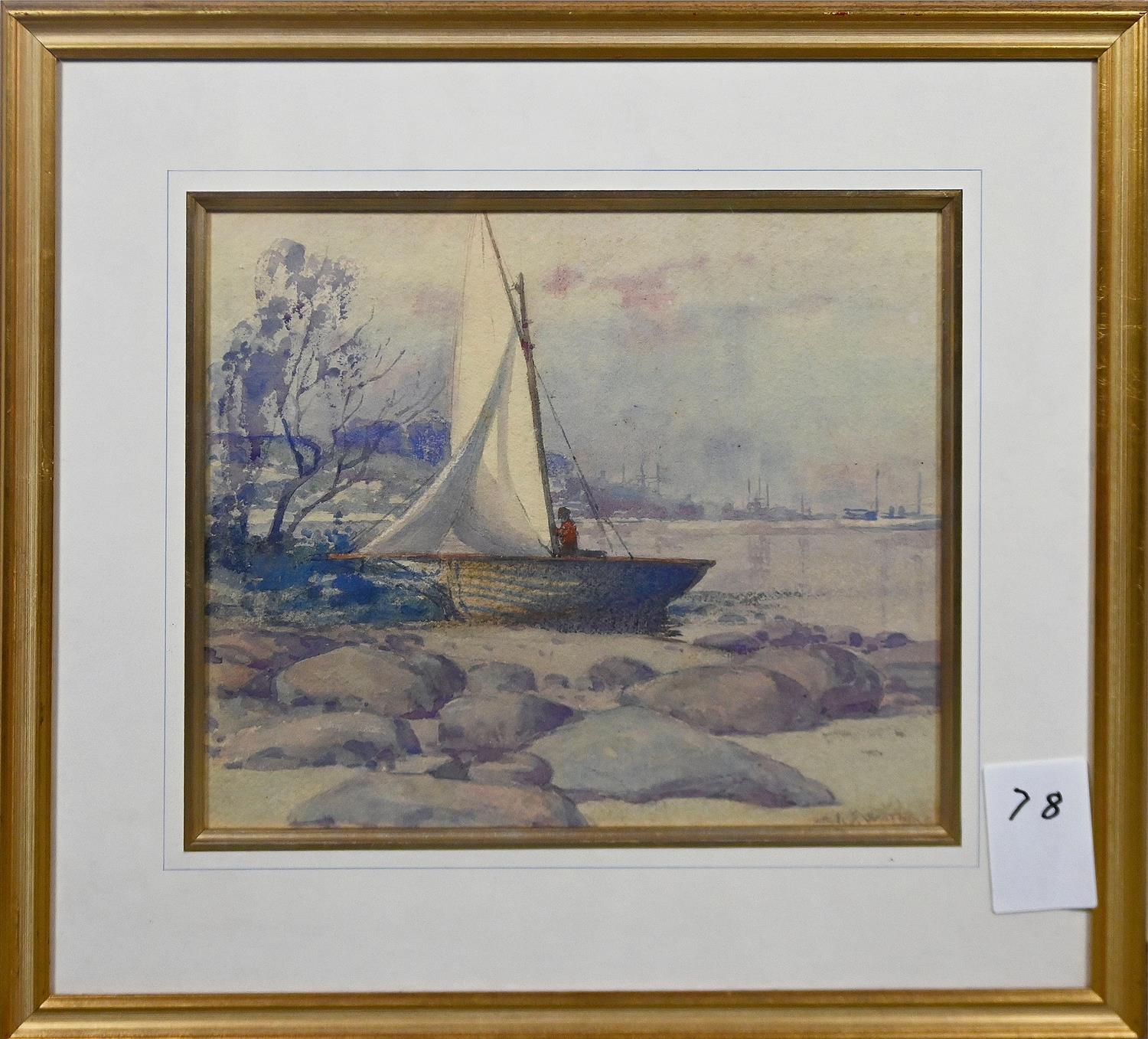 JOHN SAMUEL WATKINS, (BOAT ON A ROCKY SHORE),