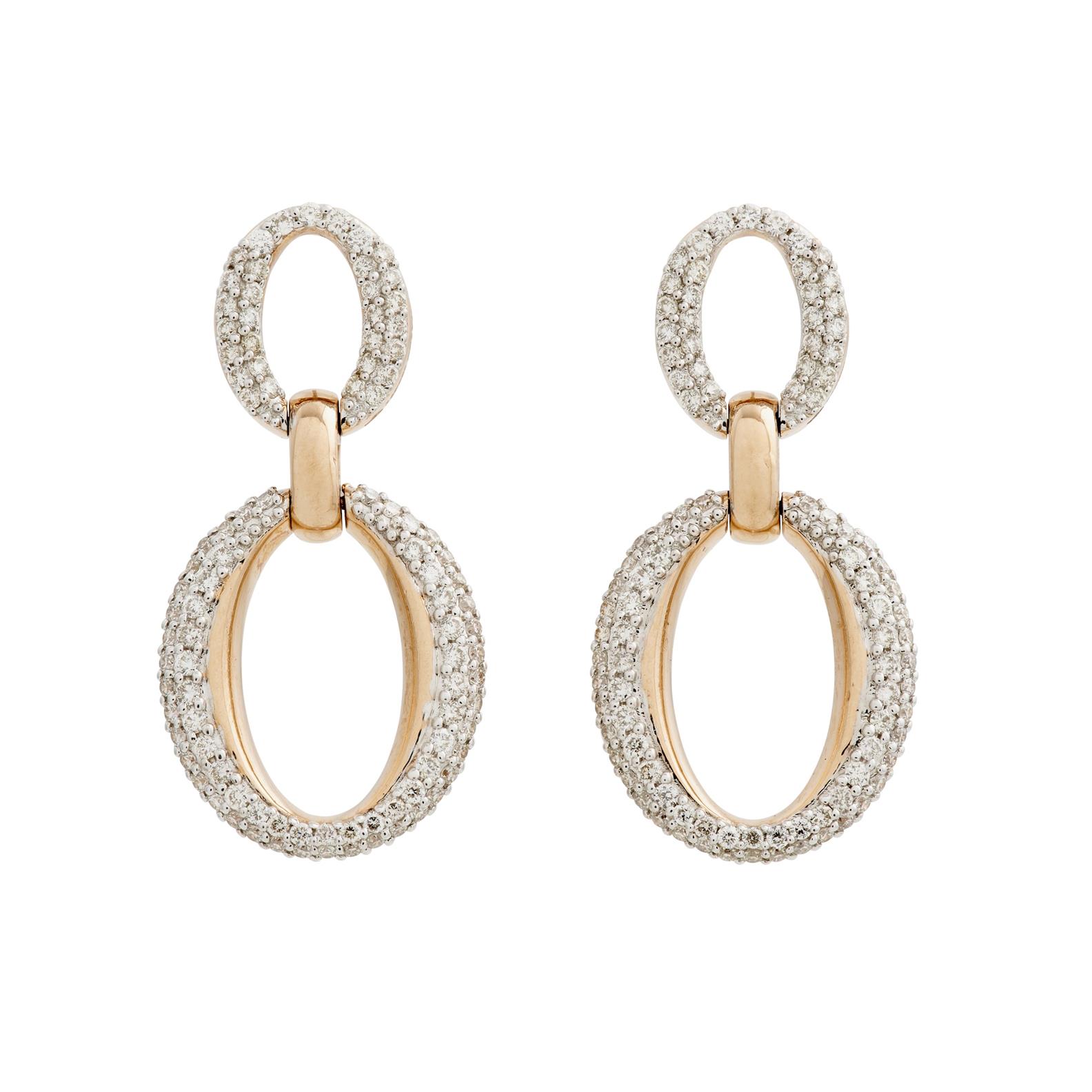 A PAIR OF DIAMOND DROP EARRINGS IN 14CT ROSE GOLD, THE DIAMONDS TOTALLING APPROXIMATELY 1.33CTS, TO POST AND BUTTERFLY FITTINGS, 32MM, 7.5GMS, ACCOMPANIED BY AN IGI JEWELLERY REPORT NUMBER 21J221272402