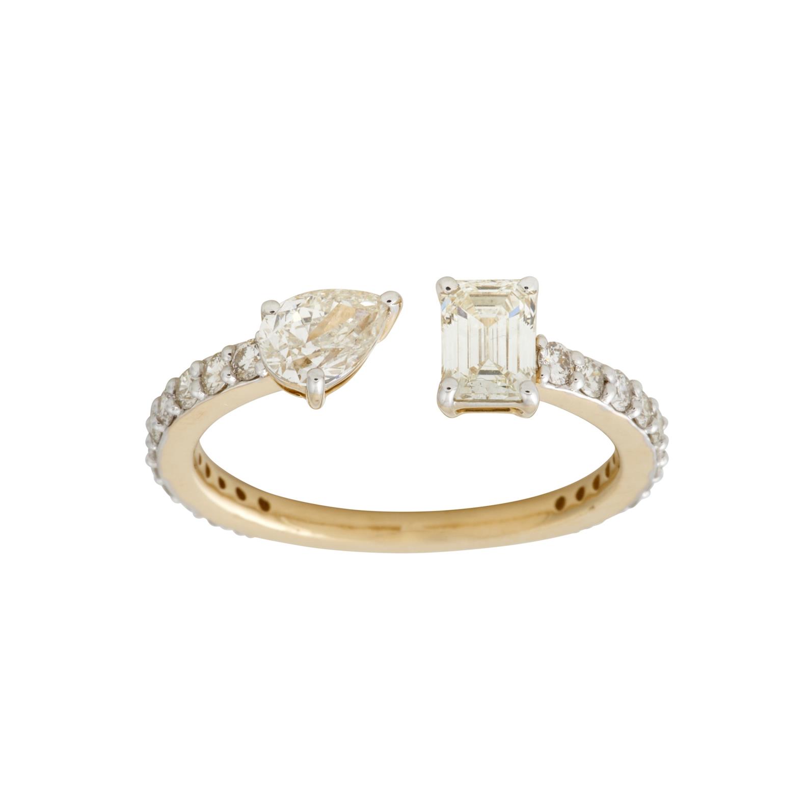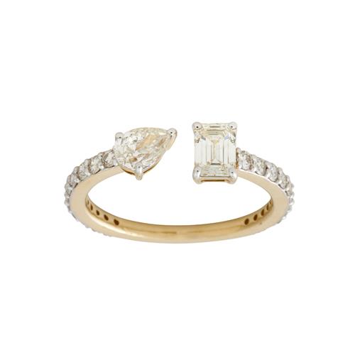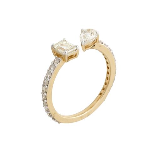 A 'TOI ET MOI' DIAMOND RING IN 14CT GOLD, THE DIAMONDS TOTALLING APPROXIMATELY 1.34CTS, SIZE N, 2.4GMS
