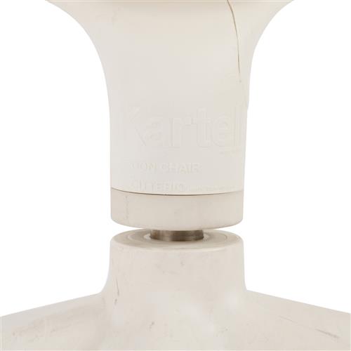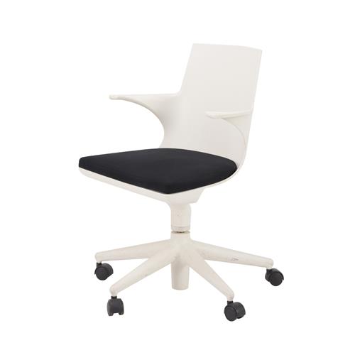 White plastic frame with black nylon upholstered seat on castor base.