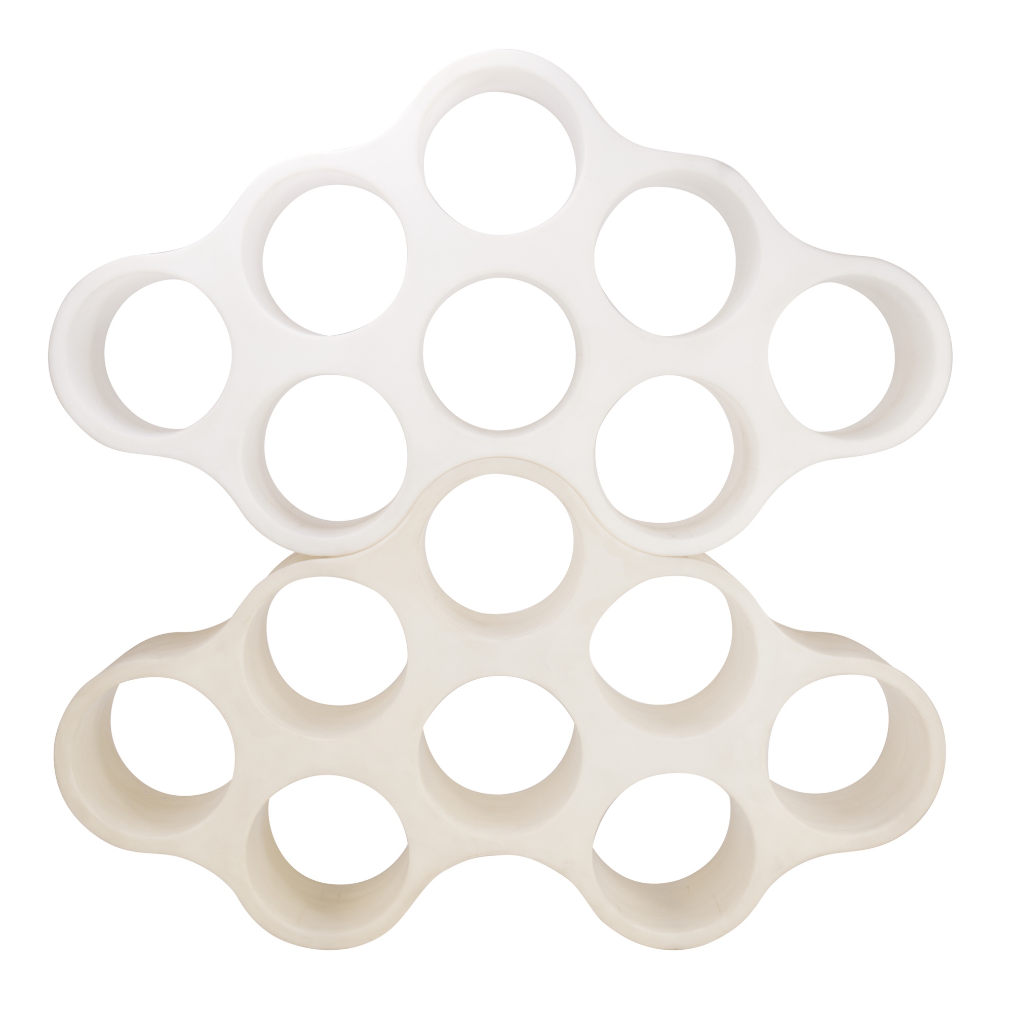 Honeycomb like structure in white polyethylene. Dual sided allowing function as room divider.
