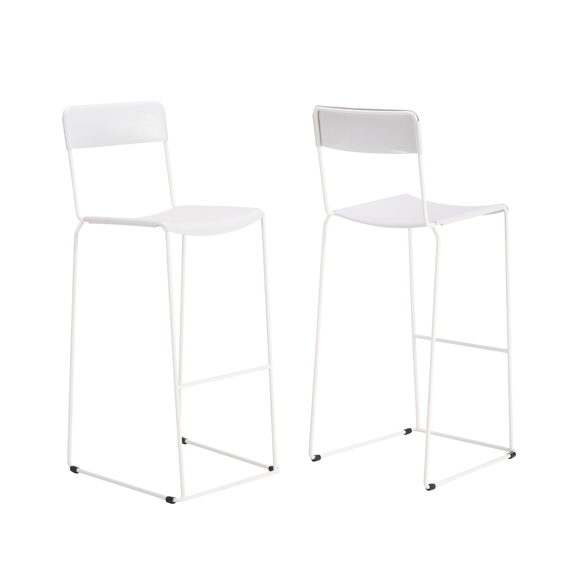 Stackable design. Steel rod frame and plastic seat and back rests.