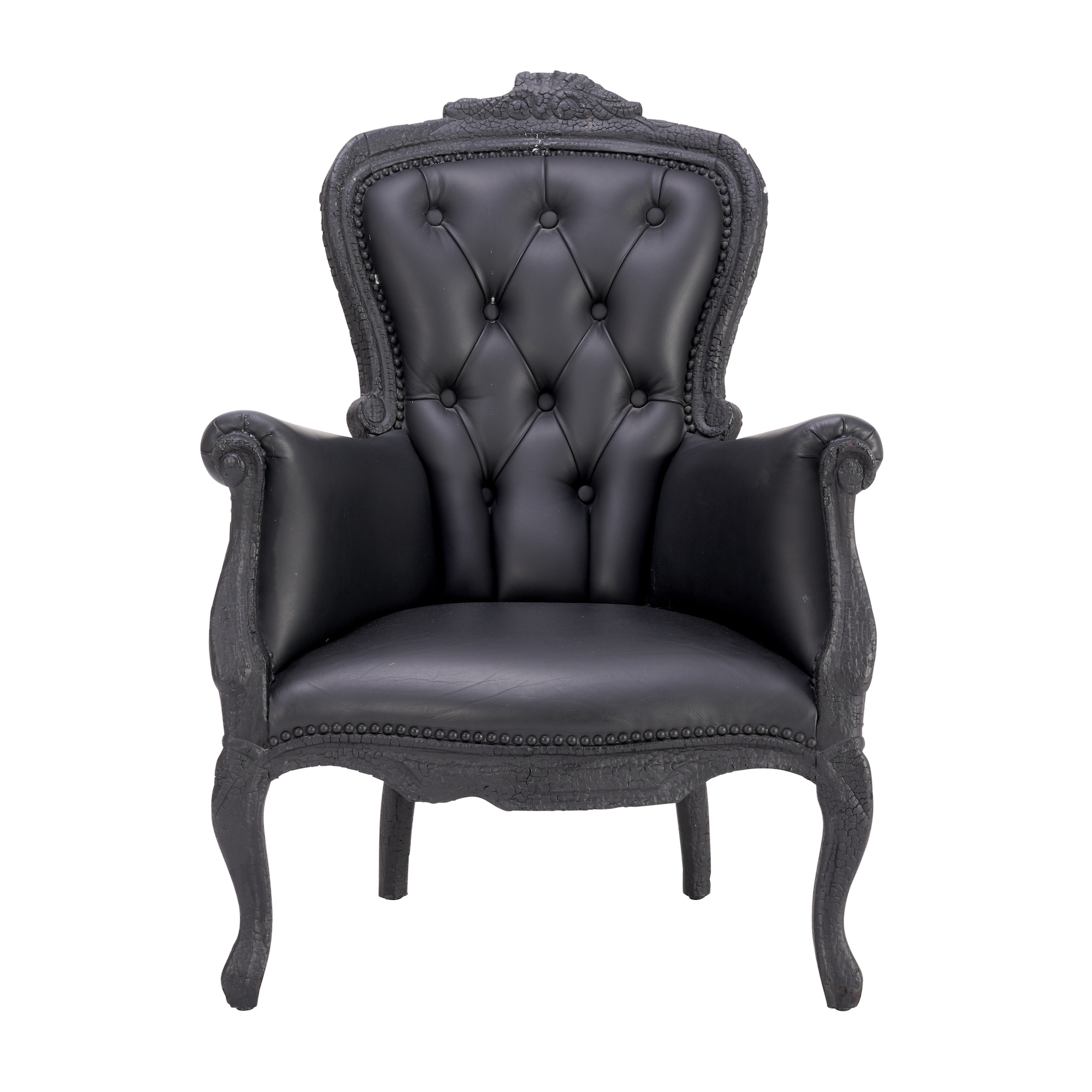 Burnt wood coated in epoxy resin with padded button back leather upholstery.