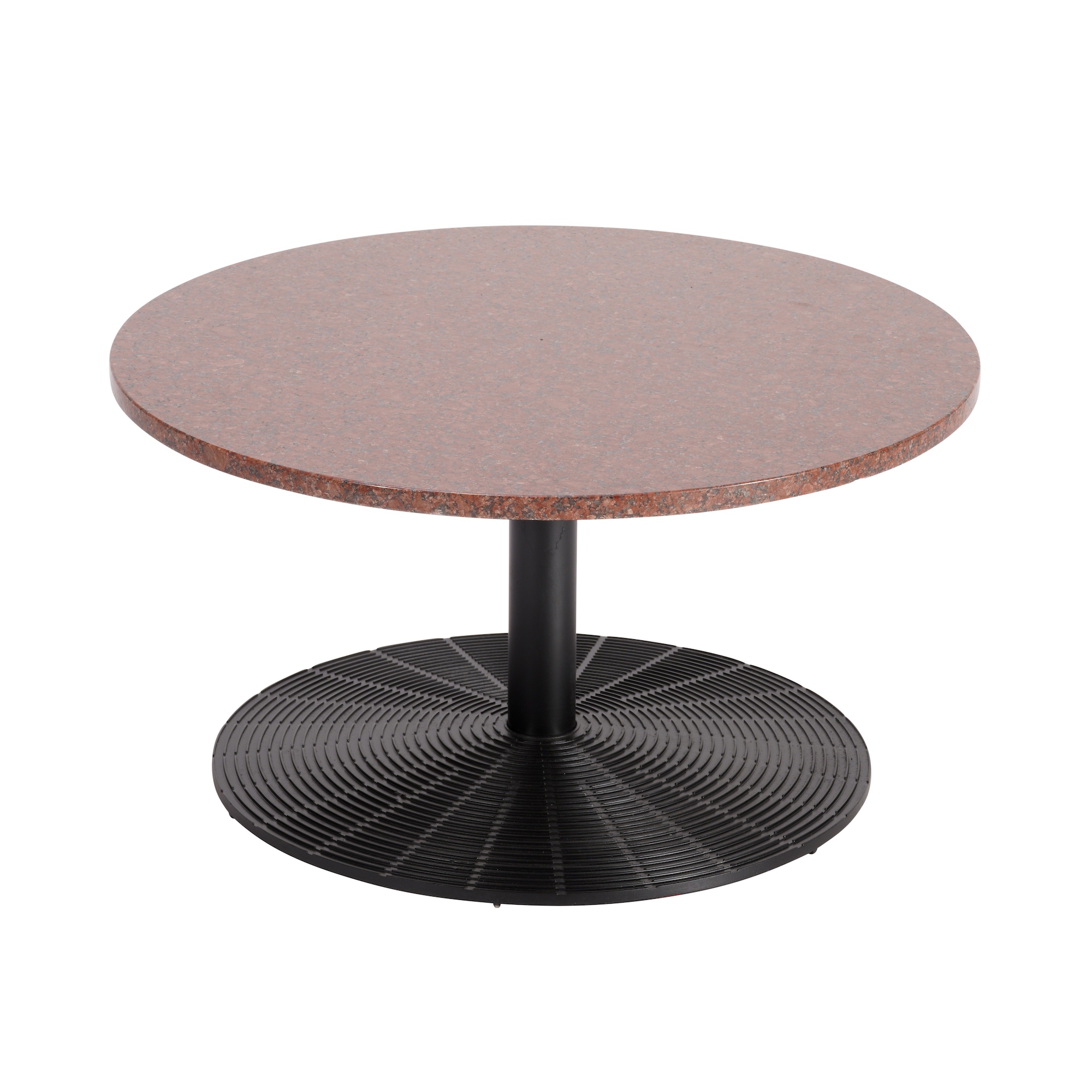 Red granite circular top on cast iron base.