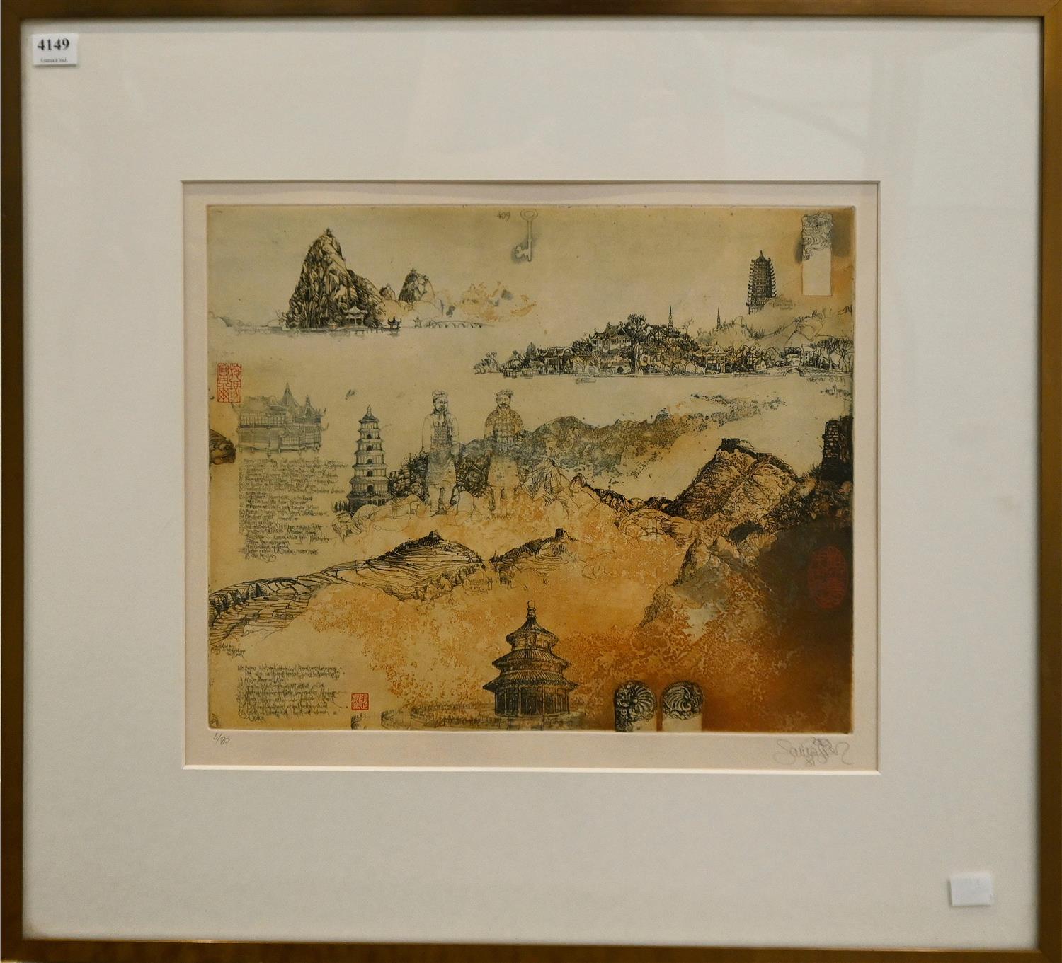 COLOUR ETCHING, NUMBERED 3/80 LOWER LEFT, SIGNED AND DATED LOWER RIGHT, 29.5 X 36CM, FRAME SIZE: 55 X 59.5CM